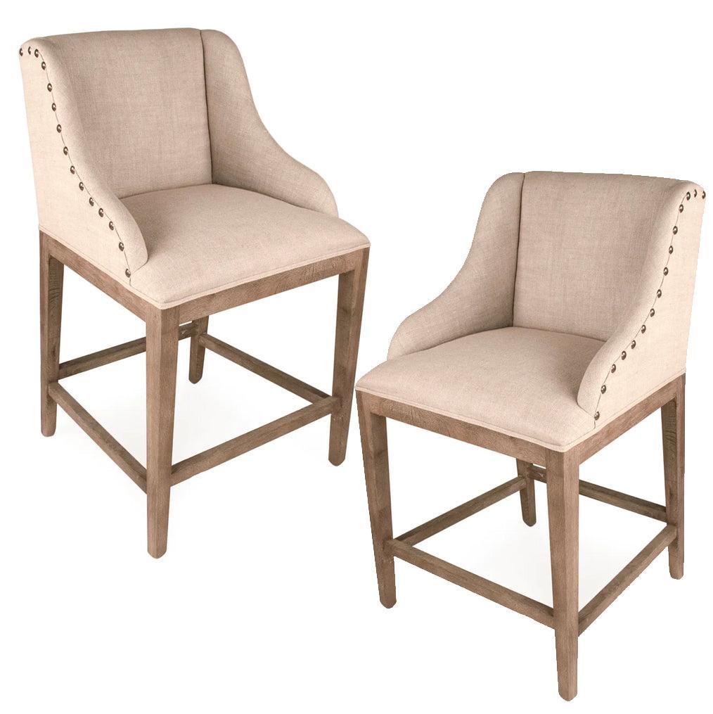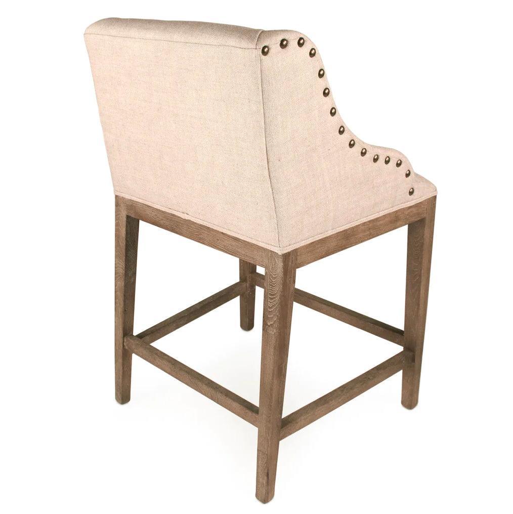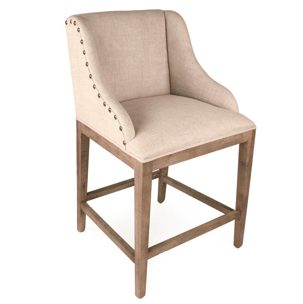 Valorizza il tuo spazio con i lussuosi sgabelli da bar in lino con chiodi naturali. Realizzati con seduta e schienale imbottiti, questi sgabelli poggiano elegantemente su una struttura in legno massello impreziosita da ampi braccioli con chiodi. Il rivestimento in lino naturale è splendidamente completato da una finitura marrone leggermente slavata. Perfetti per aggiungere un tocco di raffinatezza e comfort all'isola della tua cucina o a un tavolo alto per pasti informali, giochi o pranzi.
