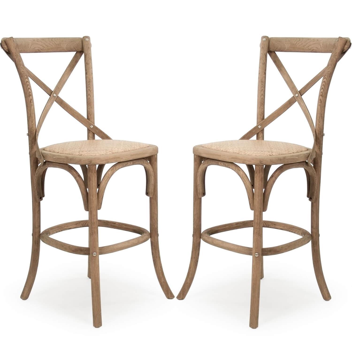 Fascino vintage parigino! Questi sgabelli da bar sono l'aggiunta perfetta alla tua cucina di ispirazione francese. Il legno di rovere naturale aggiungerà un tocco di calore naturale alla tua cucina in stile country francese. Set da 2.