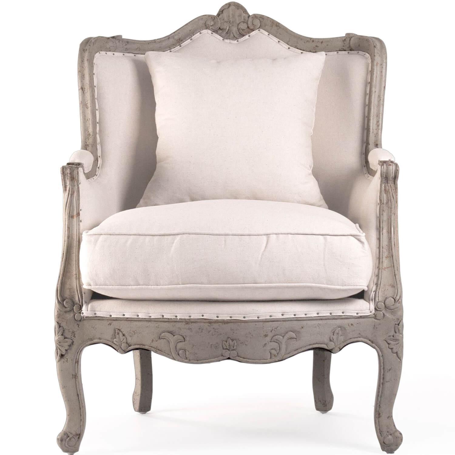 Regale e degna di un re, questa sedia presenta dettagli intagliati sulla struttura color oliva e un cuscino di seduta morbido con un cuscino decorativo in un morbido e grazioso tessuto di cotone bianco sporco. Questa sedia è perfetta per dare alla tua stanza un immediato tocco francese.