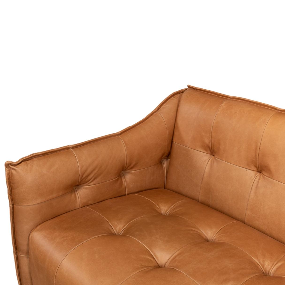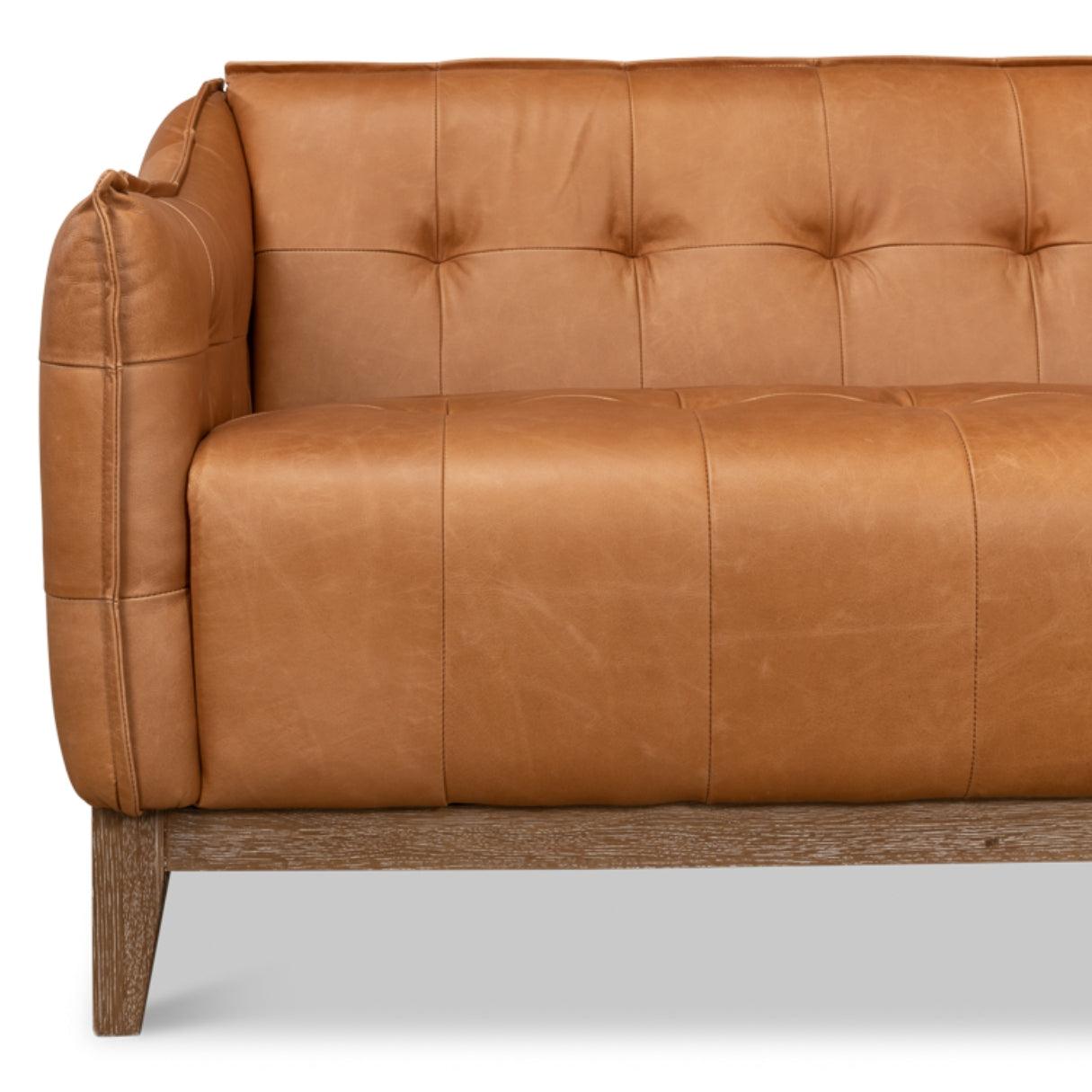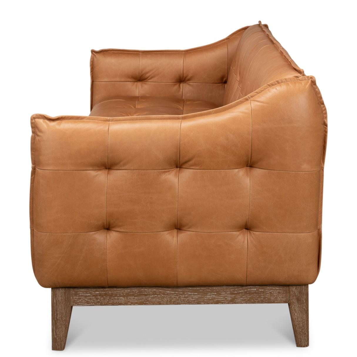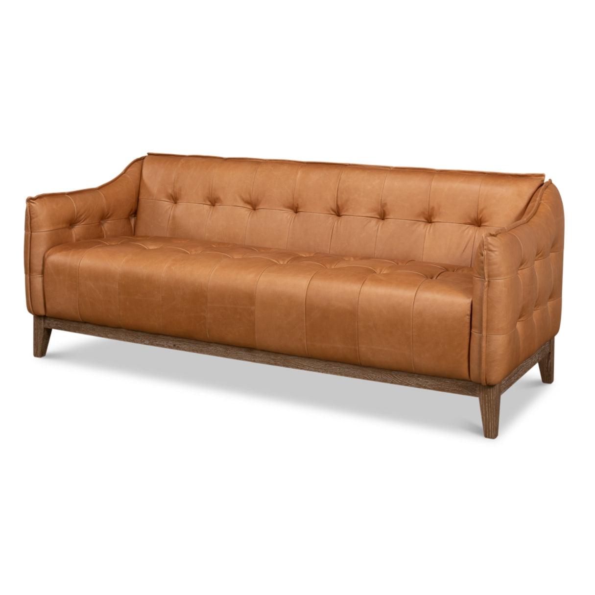 Lasciatevi conquistare da un romanticismo senza tempo con il nostro divano in pelle trapuntata marrone chiaro. Meticolosamente realizzato a mano in pregiato rovere, rifinito con una delicata verniciatura bianca e impreziosito da morbida pelle marrone chiaro, incarna l'essenza della raffinatezza classica.