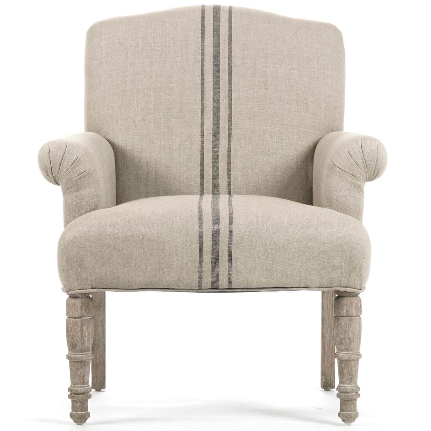 Le strisce blu grigio anticate su un tessuto di lino naturale conferiscono un tocco di mascolinità a questa comoda poltrona club. Sapientemente imbottita per il massimo comfort, ricorda i vecchi sacchi di juta parigini. Le gambe a fuso in legno massello intagliato a mano forniscono una base robusta per questa versatile sedia.