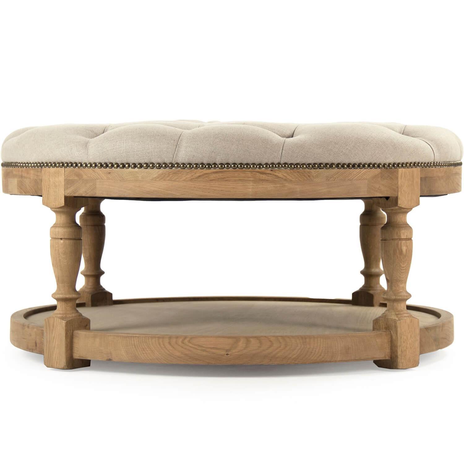 Un'aggiunta meravigliosamente comoda al vostro salotto o bar, il pouf rotondo trapuntato Provence aggiunge un gradito tocco di comfort, conferendo al contempo un tocco di interesse visivo. Con un utile ripiano sottostante, gambe finemente intagliate e una calda finitura in rovere naturale, presenta un piano elegantemente rivestito in lino naturale. Una singola fila di puntine per tappezzeria offre un meraviglioso contrasto, fungendo da perfetto tocco finale.