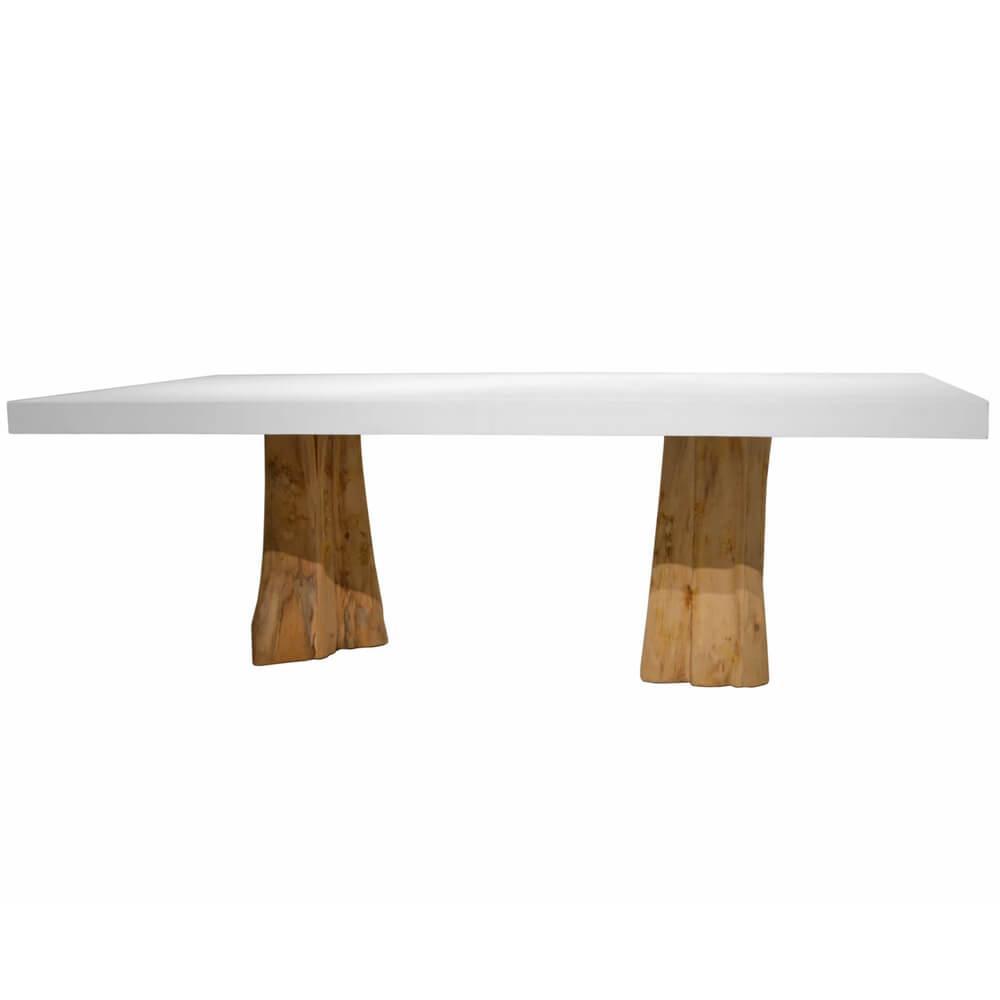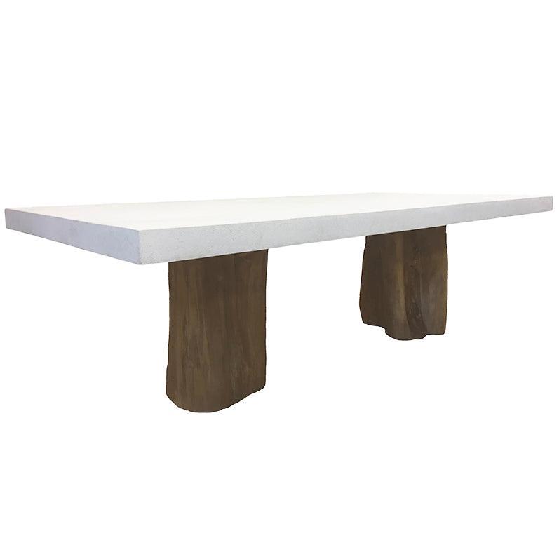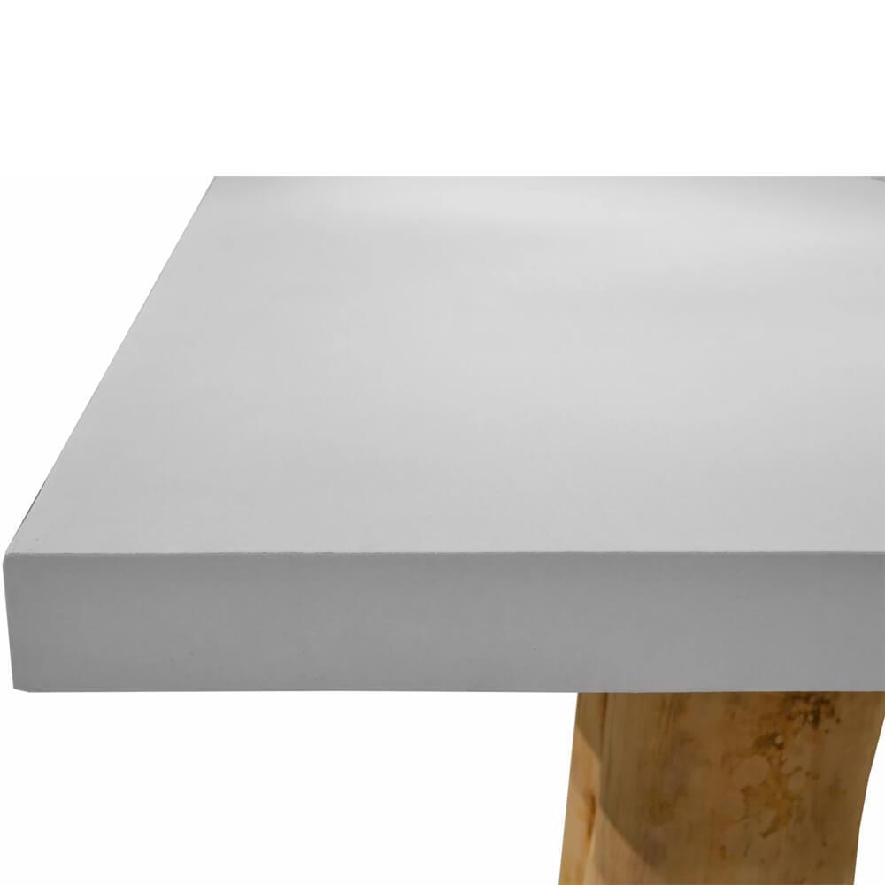Radunatevi! Il tavolo da pranzo da esterno in tronchi e cemento è il luogo perfetto per gustare i pasti all'aperto. Questo elegante pezzo è sapientemente realizzato per garantire resistenza e longevità, con gambe in teak naturale e un piano liscio in cemento con fibra di vetro.