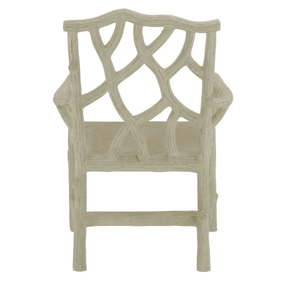 Questa splendida sedia in finto legno è realizzata in cemento di alta qualità scolpito a mano su una struttura in acciaio, sapientemente dipinta e testurizzata per imitare il legno levigato. Ottieni l'aspetto e il fascino del legno, ma con una durevolezza senza tempo! Questo pezzo unico è perfetto per qualsiasi salotto, patio o giardino! Pesa 50 kg.