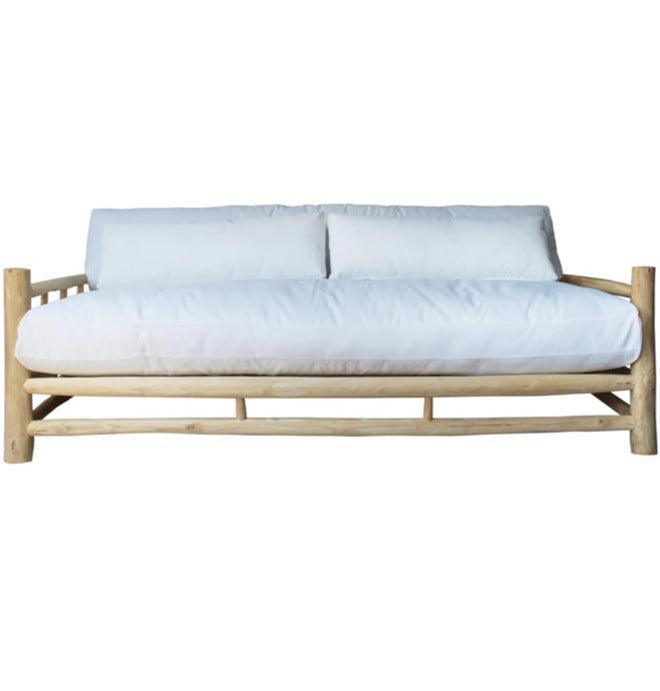 Il divano da esterno Ibiza Natural Branch Cabin ringiovanirà il tuo patio o portico. La struttura in teak con rami ha una finitura naturale che ricorda una baita di montagna, creando un'atmosfera tranquilla e all'aria aperta. I cuscini in tessuto bianco di qualità marina sono allegri ma resistenti, completando questo straordinario divano da esterno.