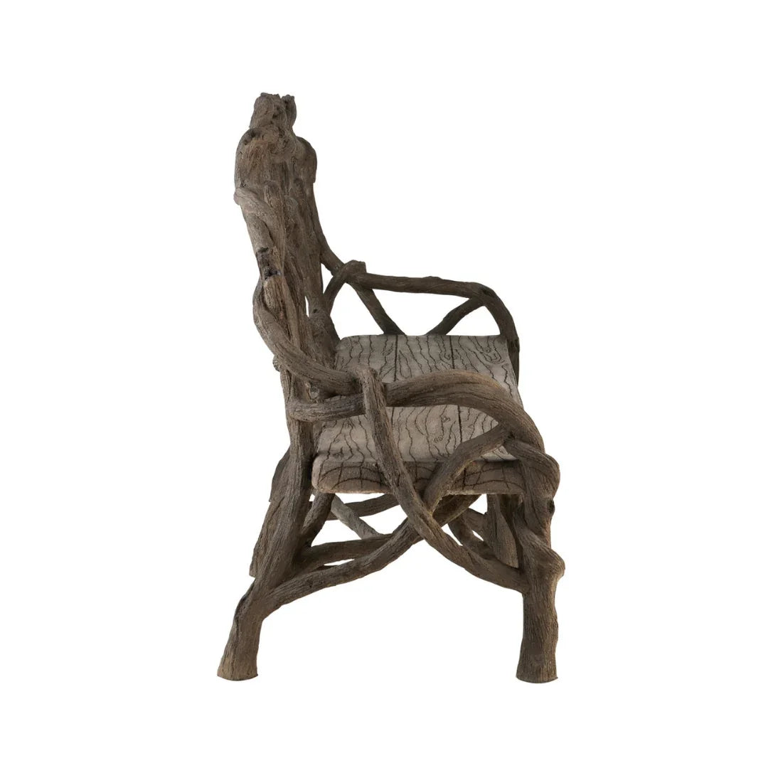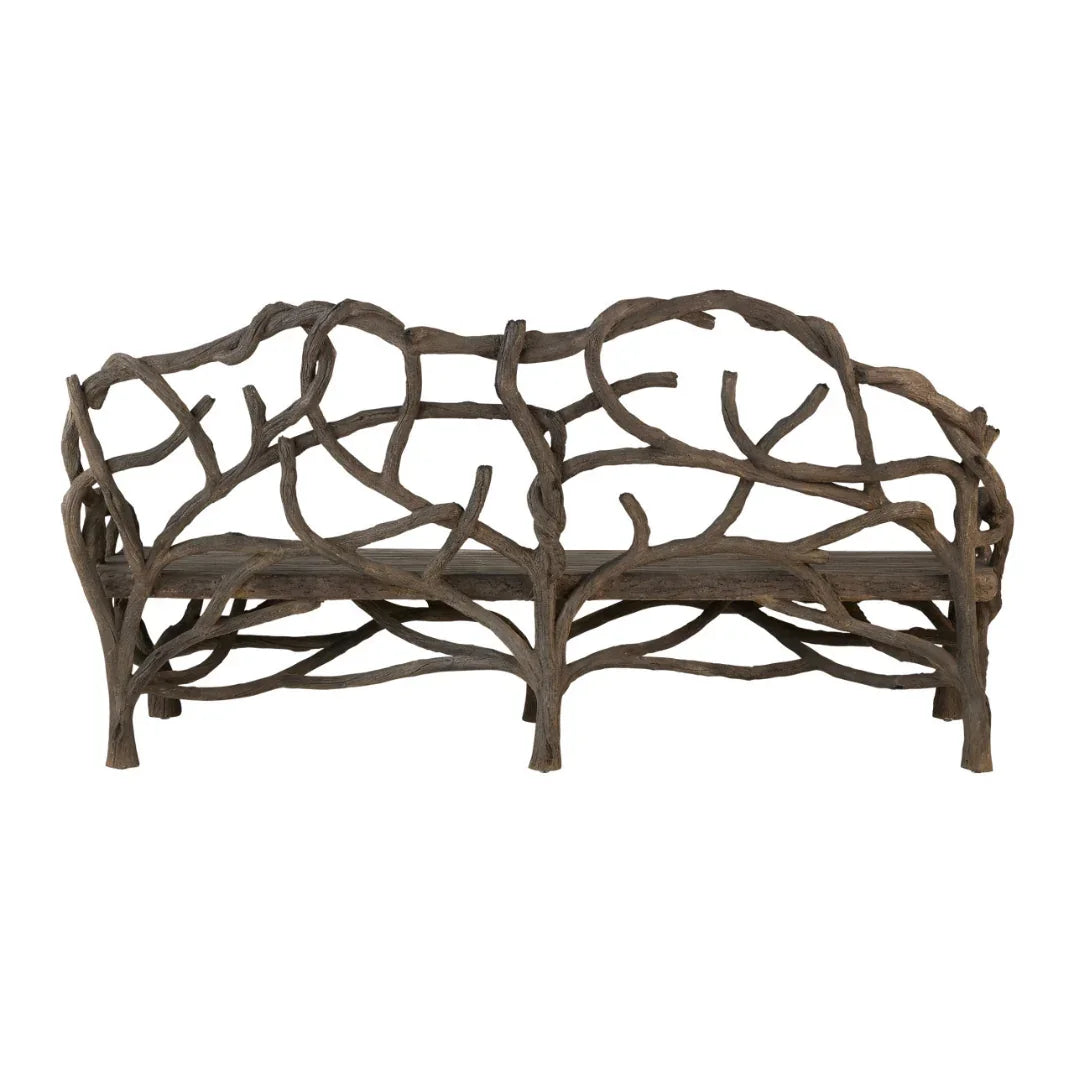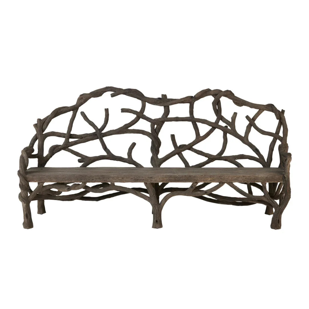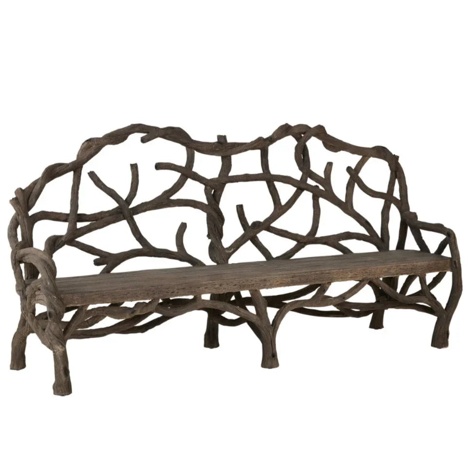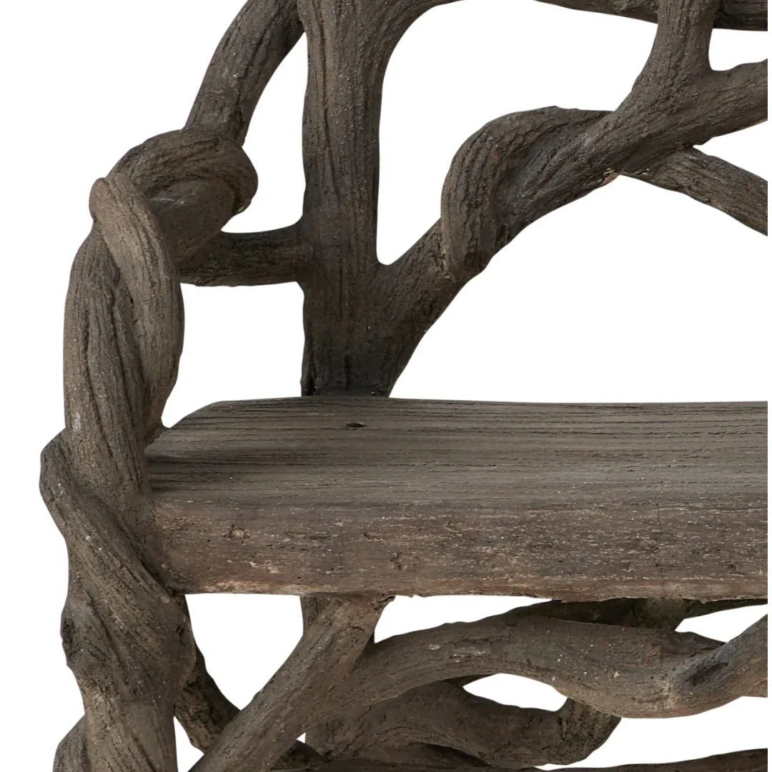 Aggiungi un tocco di natura al tuo spazio con questa panca rustica in finto legno, progettata per assomigliare a rami d'albero scolpiti. La sua finitura anticata e la forma organica conferiscono un tocco di fascino boschivo a patii, giardini o interni rustici. Robusta ed elegante, è un pezzo unico che unisce arte e funzionalità.