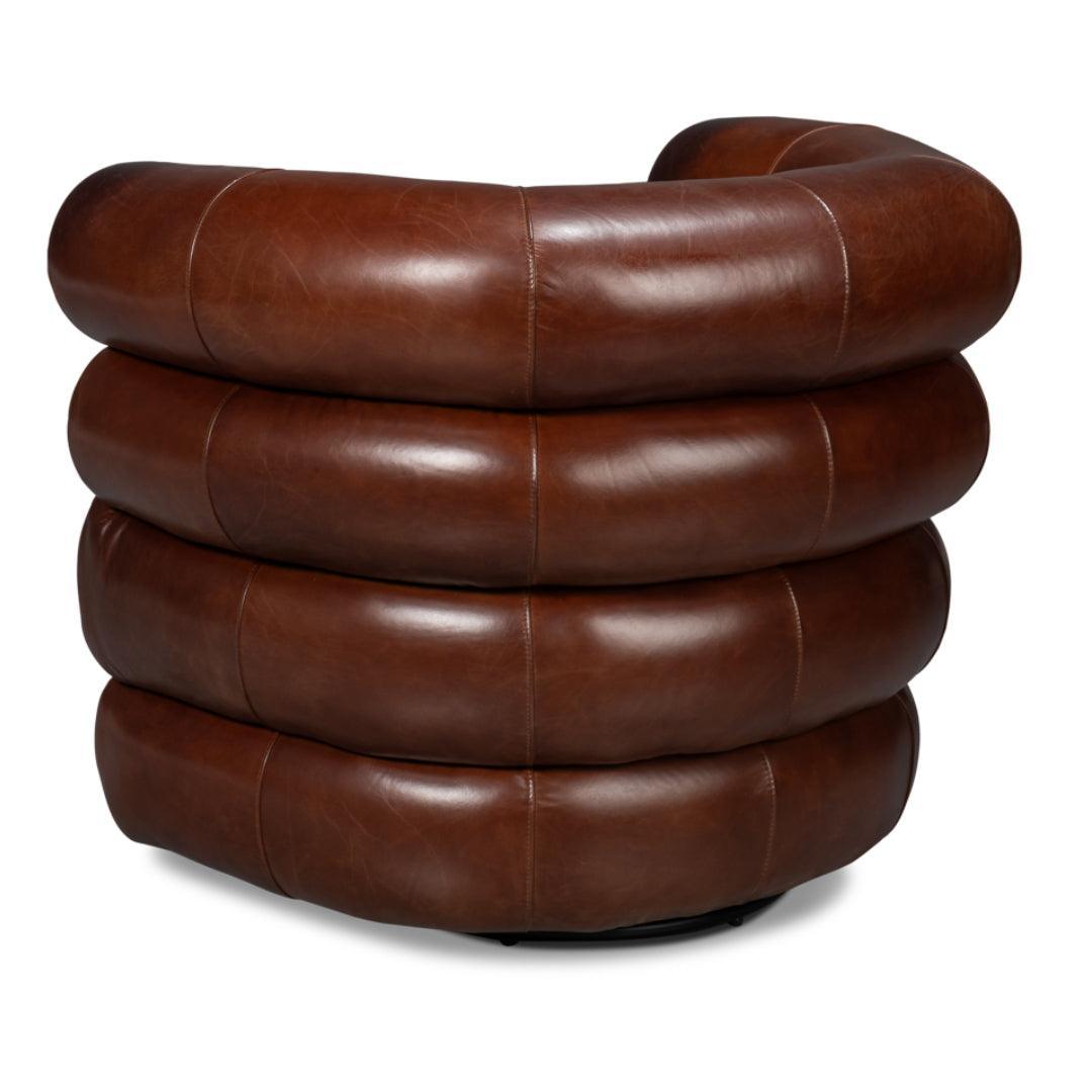 Lasciatevi conquistare dalla moderna raffinatezza della sedia girevole in pelle marrone Newark. Il suo design elegante fonde armoniosamente comfort e stile, incoraggiandovi a intrecciare storie d'amore in ogni rivoluzione moderna, dove ogni secondo è una celebrazione della raffinatezza.