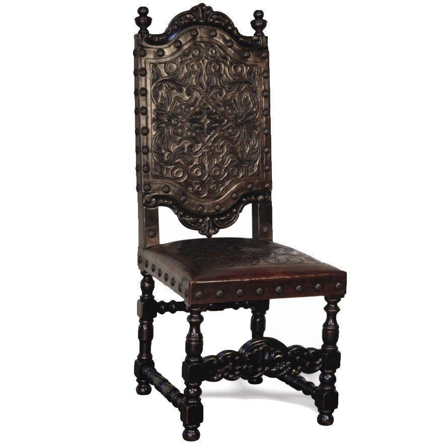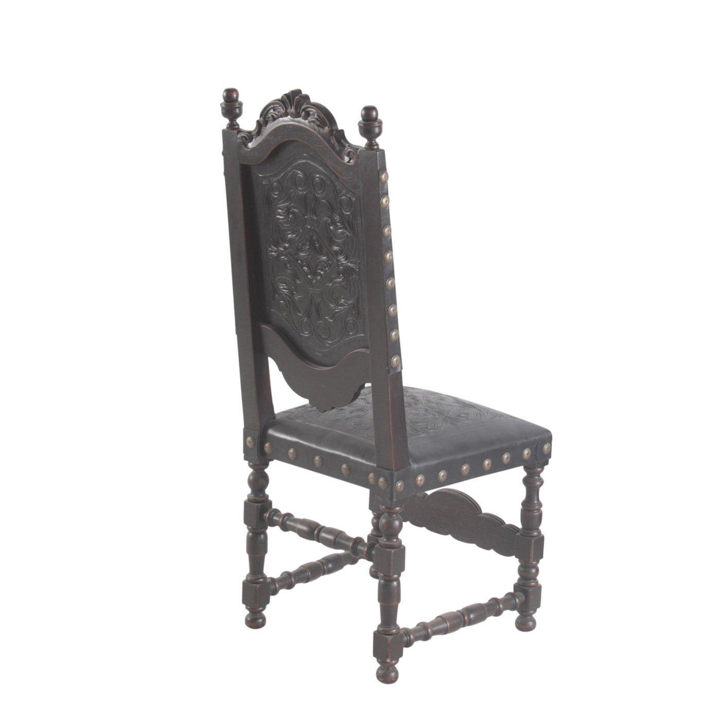 Complemento perfetto per qualsiasi set da pranzo ispirato a Villa e ideale come sedia occasionale, la sedia Del Rey in pelle spagnola marrone è un capolavoro funzionale che dona bellezza e comfort alla vostra casa. La struttura in mogano massello intagliata a mano conferisce un aspetto ricco, impreziosito dalla pelle splendidamente lavorata sullo schienale e dalla seduta leggermente imbottita.