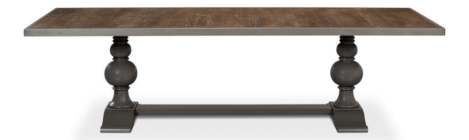 Dettagli raffinati e dimensioni imponenti rendono il tavolo da pranzo lungo rustico Vancastle un'aggiunta meravigliosa alla vostra casa. Questo pezzo unico presenta una robusta base in legno massello di tulipier e un piano in legno di recupero con assi di legno per un tocco di eleganza vissuta. La finitura grigio scuro e intenso della base offre un sottile contrasto, mentre le assi striate e invecchiate del piano ne rivelano la provenienza.