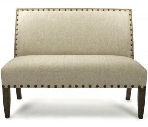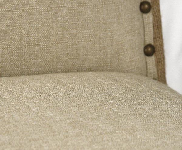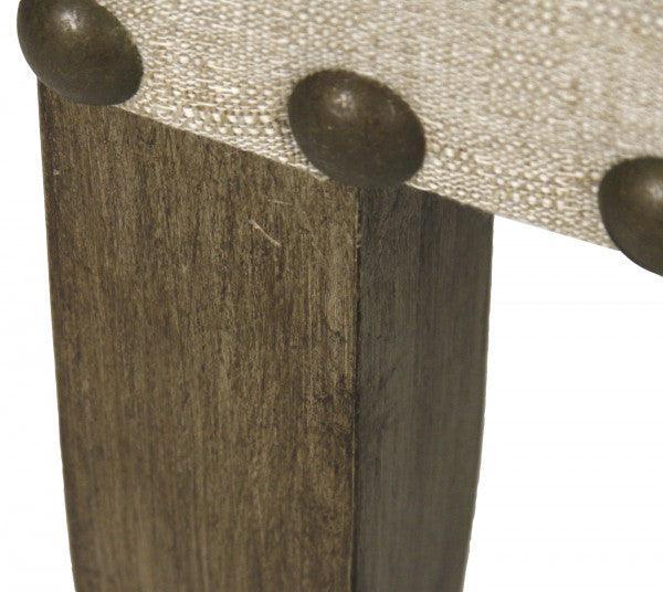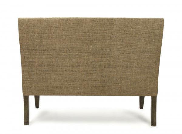 La panca contemporanea con schienale in juta e lino è una splendida aggiunta alla vostra camera da letto, all'ingresso o al soggiorno. Le gambe in legno d'acero sono rivestite con una finitura scura che contrasta magnificamente con il rivestimento in lino naturale. I borchie in metallo esaltano l'atmosfera vintage di questa panca alla moda.