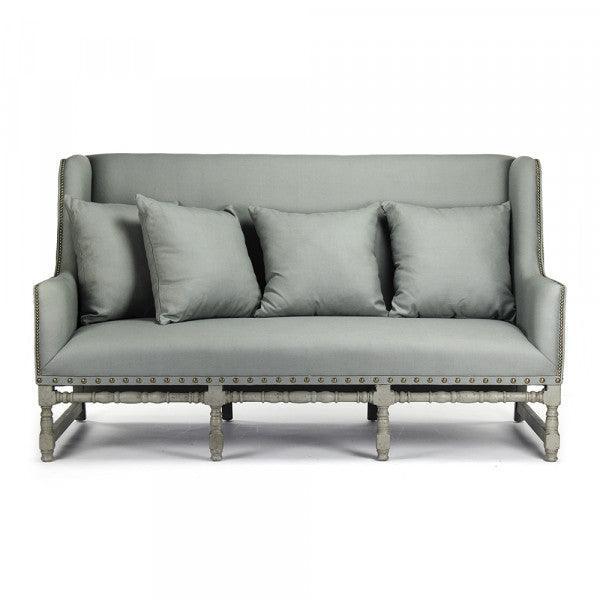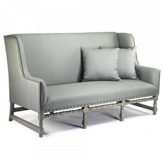 Questa panca imbottita offre il massimo comfort e versatilità. Con rivestimento in lino grigio salvia, lo schienale rigido, i cuscini morbidi e lo stile a ali si adatteranno perfettamente a qualsiasi stile di arredamento. Una cornice intagliata a mano e una finitura con borchie aggiungono il tocco finale. Utilizzatela al posto delle tradizionali sedie da pranzo o posizionatela in un soggiorno per creare un ambiente confortevole in cui gustare un tè pomeridiano o leggere un buon libro.
