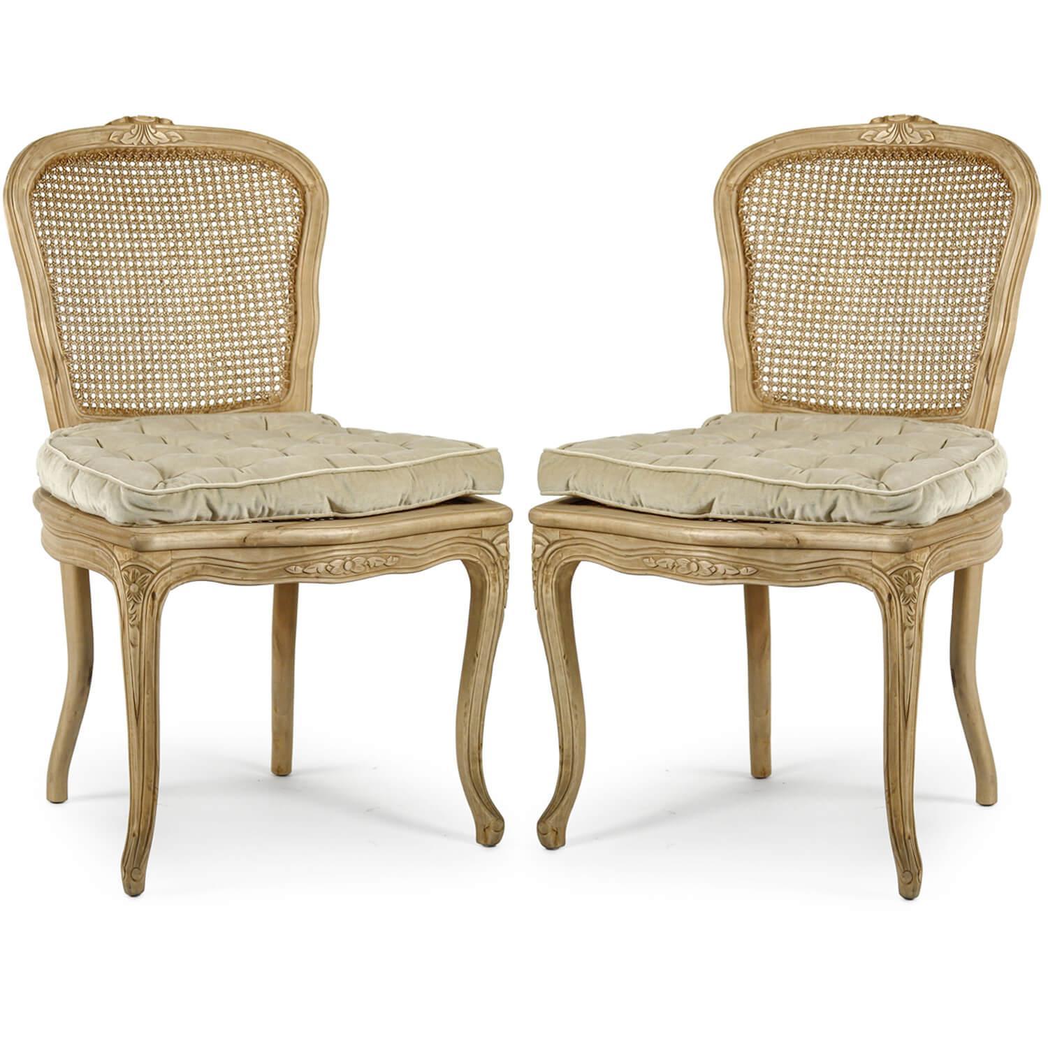 Questo design di ispirazione francese è allo stesso tempo moderno e classico! Delicati intagli botanici sulle gambe e sullo schienale in canna d'India rendono questa splendida sedia da pranzo in rovere unica nel suo genere. Il cuscino trapuntato è realizzato in un morbido tessuto color crema che si abbina perfettamente alla finitura più scura del legno. Set di 2.