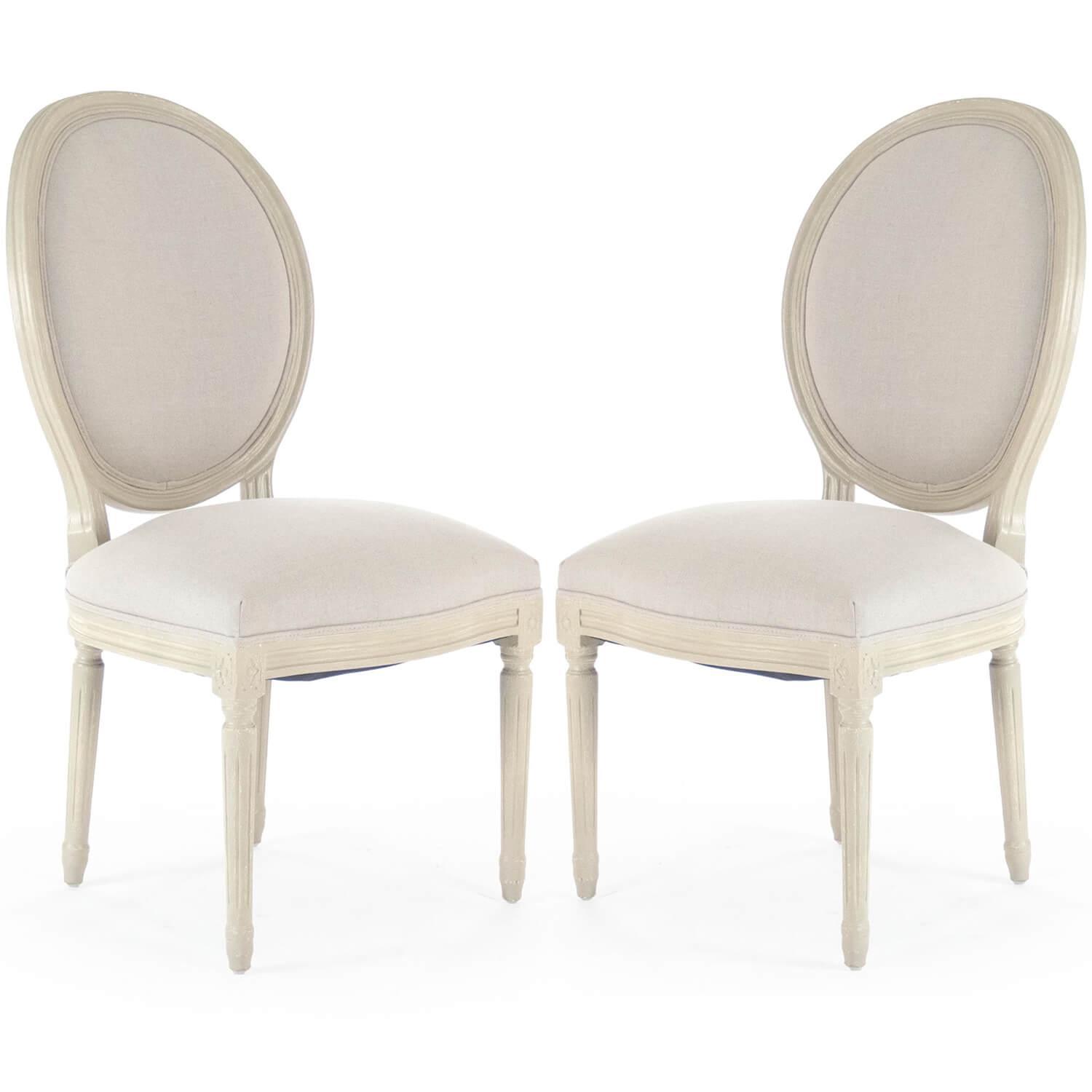 Portate a casa vostra un tocco di eleganza classica con queste sedie laterali color crema con schienale arrotondato a medaglione. Un'aggiunta davvero sofisticata alla vostra sala da pranzo o a qualsiasi spazio in cui sia gradita una seduta occasionale, sono dotate di rivestimento in lino naturale. Con finitura color crema neutro, queste sedie si adattano perfettamente a una varietà di interni.