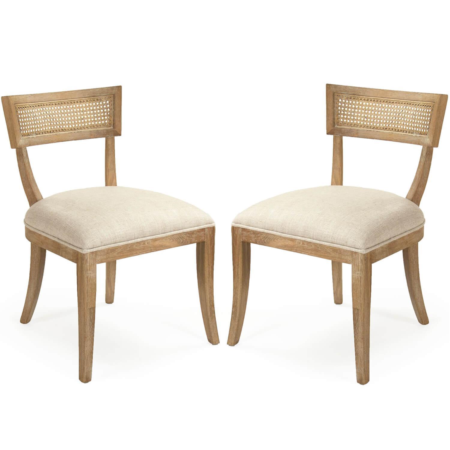 Con il suo aspetto snello e leggero, questo set di due sedie in canna francese con schienale curvo è l'aggiunta ideale alla sala da pranzo o alla cucina abitabile. Gli schienali curvi offrono supporto, mentre le sedute imbottite offrono comfort. Supportate da splendide strutture in legno con finitura naturale slavata, sono versatili e adatte a una varietà di ambienti.