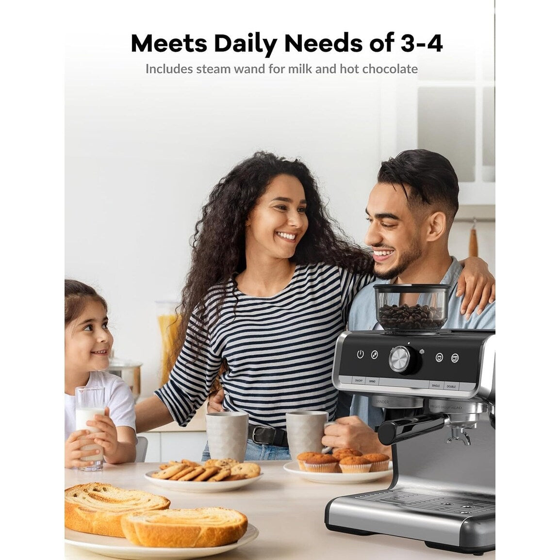 Macchina per caffè espresso semiautomatica da 20 bar con macinacaffè e montalatte