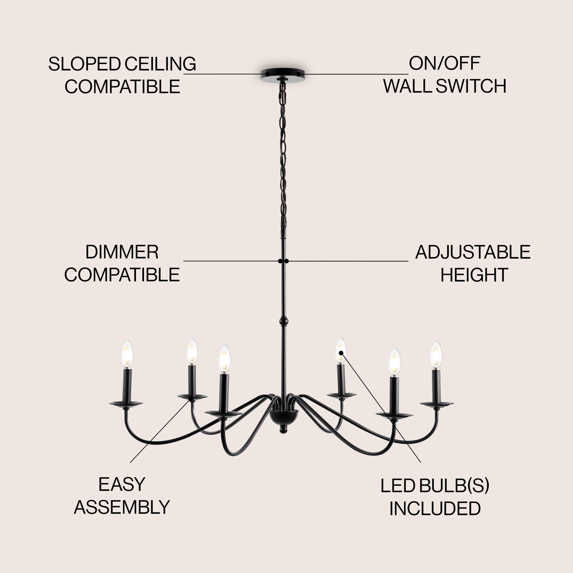 Accetta 6 lampadine ed è compatibile con TIPO 'B' 40W o CFL 13W o LED 9W