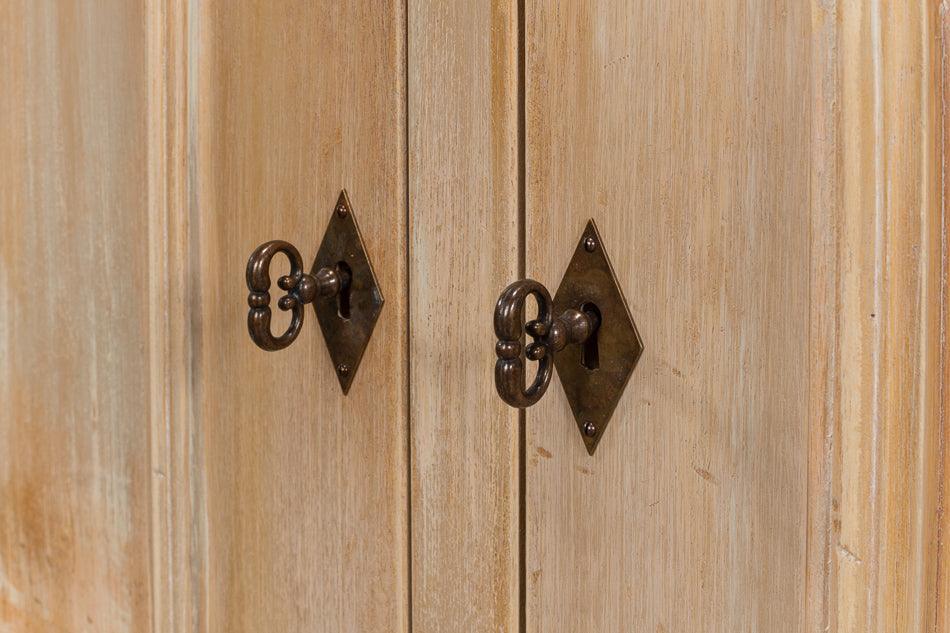 • Realizzato artigianalmente in legno massello • Finitura rovere anticato • Tre porte con chiave • Tre ripiani interni