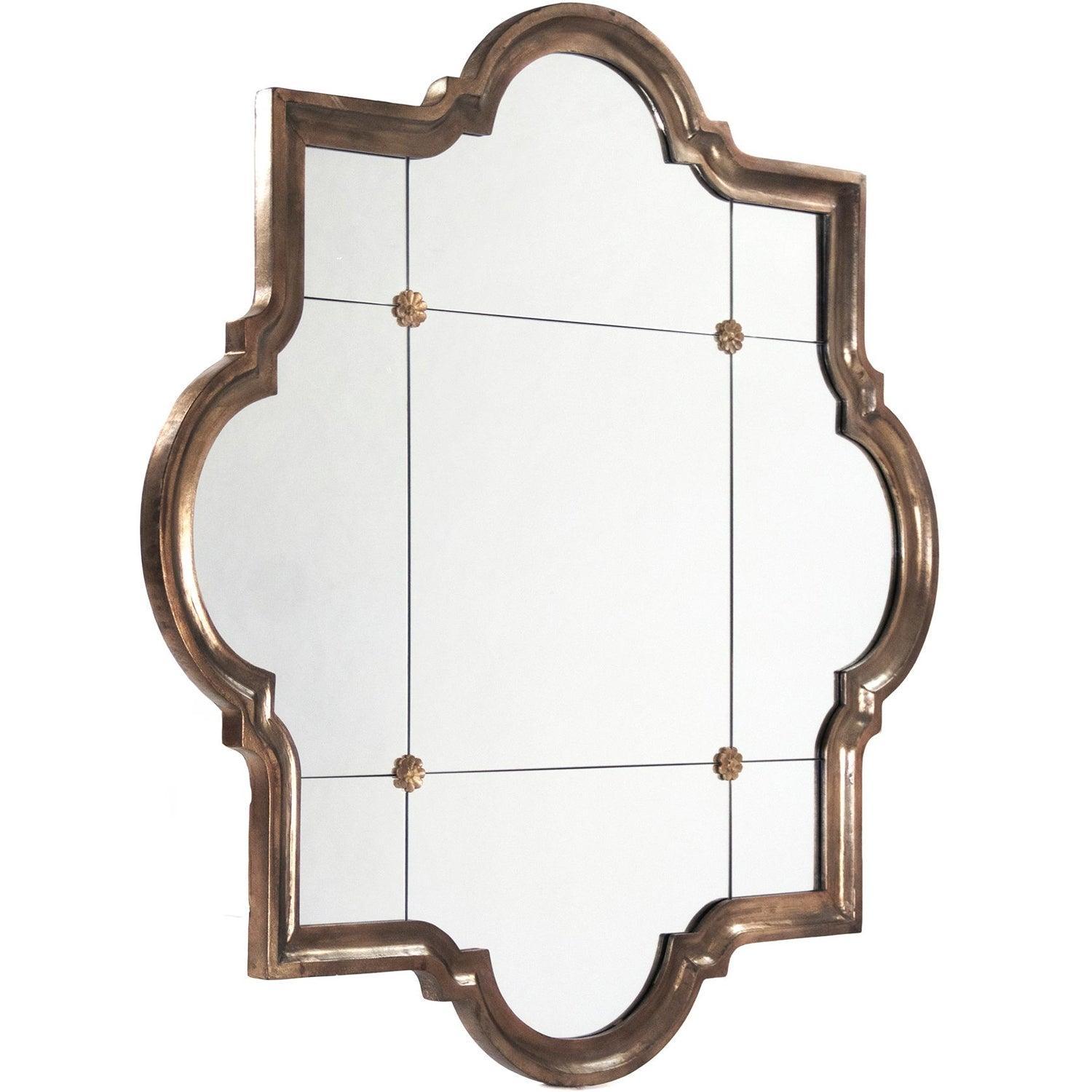 Questo esclusivo specchio da parete presenta un motivo a quadrifoglio stilizzato che circonda i quadrati smussati dello specchio, impreziositi da fiorellini applicati. La finitura anticata aggiunge un tocco di eleganza. Questo grande specchio può essere appeso nell'ingresso per riflettere la splendida luce naturale o sopra un camino o una credenza come opera d'arte.