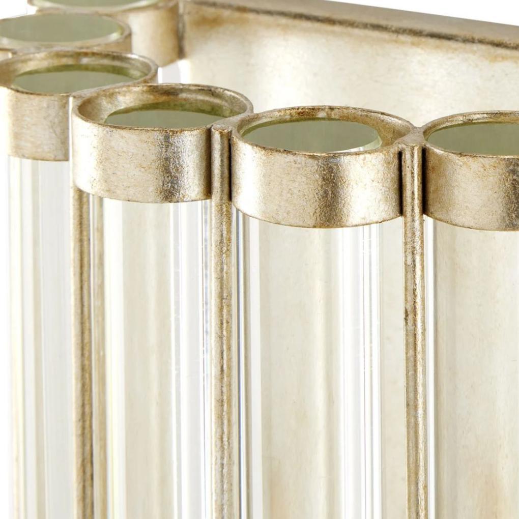 Scoprite l'eleganza sobria e la raffinata lavorazione artigianale dell'applique da parete Art Déco Glass Tubes. Con tubi in cristallo ottico di alta qualità, questa squisita lampada illumina in modo sofisticato ed esclusivo. La moderna finitura in foglia d'argento e la struttura in ferro battuto con nastro aggiungono un tocco di esclusività, pur rispettando gli standard ADA. La sua silhouette curva crea un aspetto frontale discreto ma accattivante, emanando un senso di lusso e un design impeccabile.