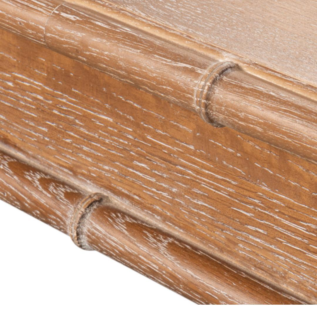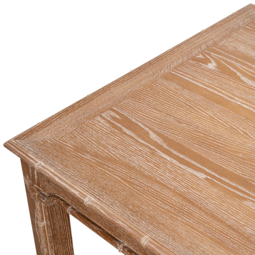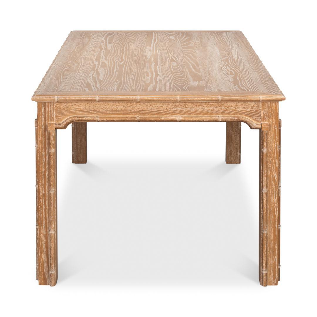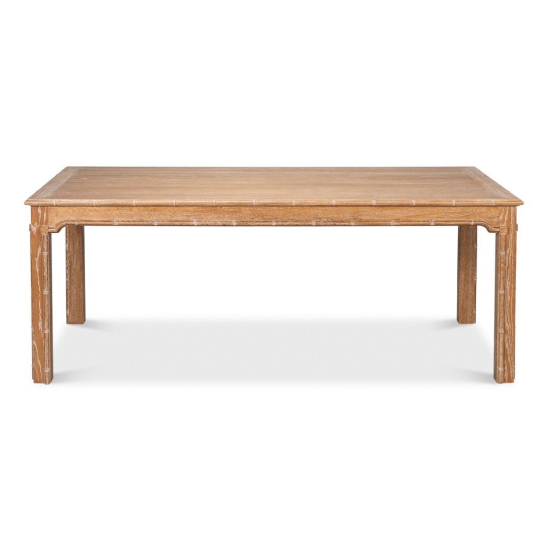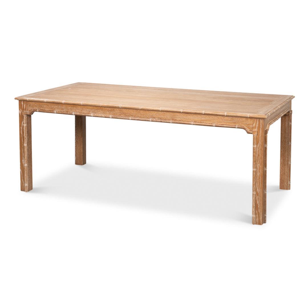 Portate una ventata di aria fresca costiera nella vostra sala da pranzo con il tavolo da pranzo con bordo in bambù. Questo splendido tavolo presenta un caratteristico bordo in bambù, realizzato in pregiato rovere marrone, che incarna il fascino sereno e naturale della vita costiera.