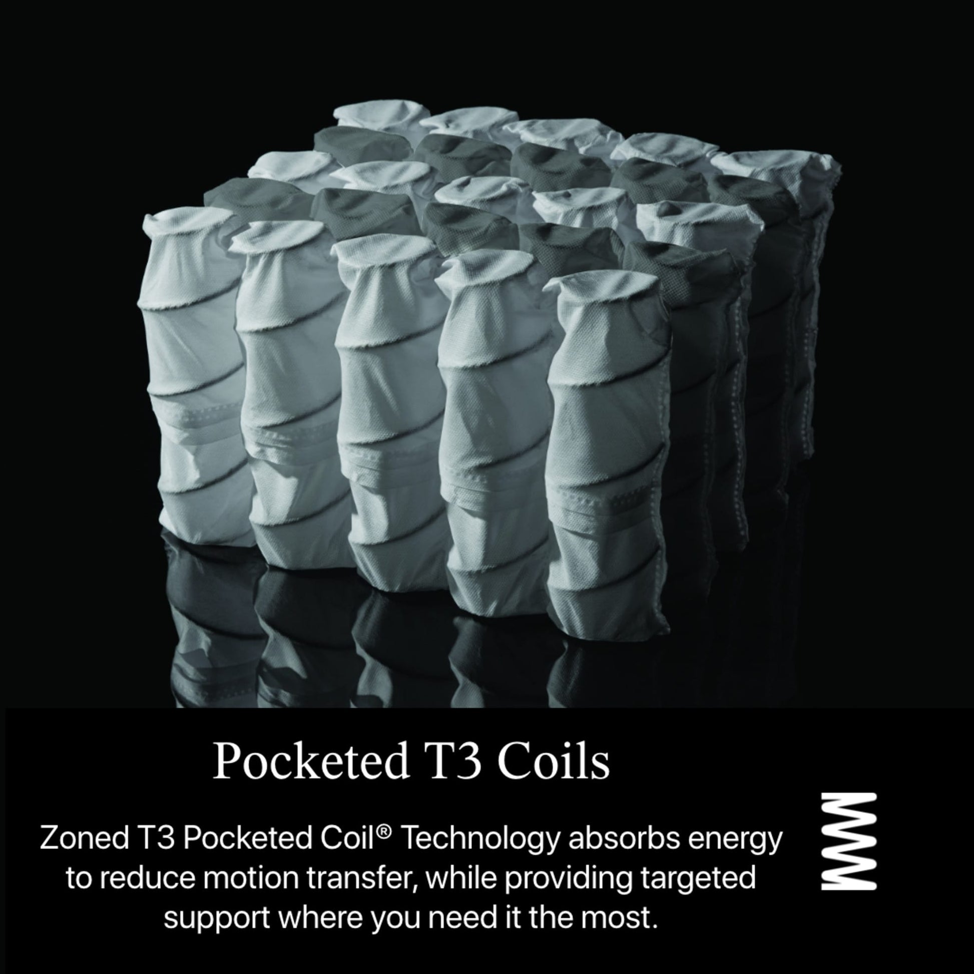 • Le molle insacchettate Premier forniscono un supporto mirato e un maggiore sollievo dalla pressione per il core e la schiena, assorbendo al contempo l'energia per ridurre il movimento