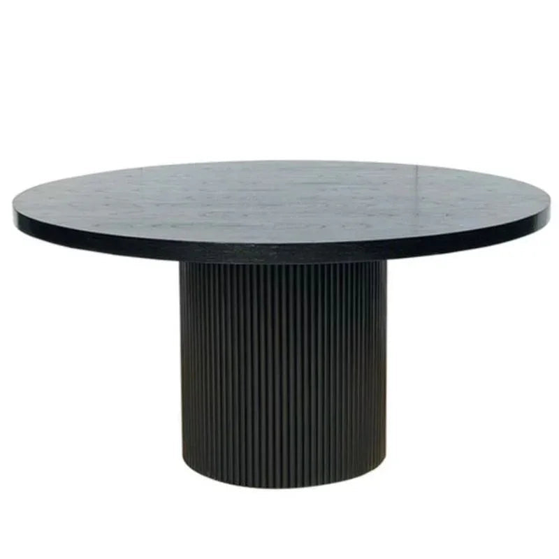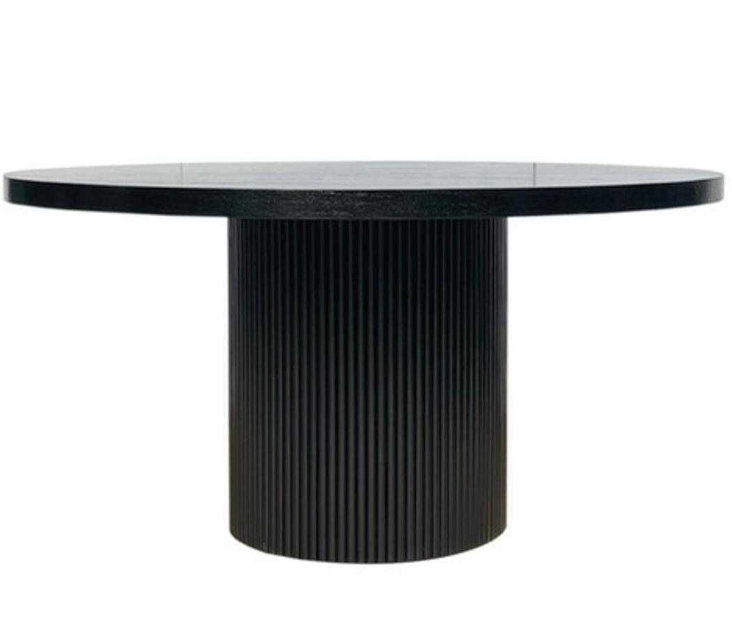Scopri il perfetto equilibrio tra raffinatezza e fascino rustico con il nostro tavolo da pranzo rotondo in legno di mindi Black Elle. L'elegante finitura nera conferisce un tocco di moderna eleganza, mentre il legno massello di mindi dona calore e bellezza duraturi.