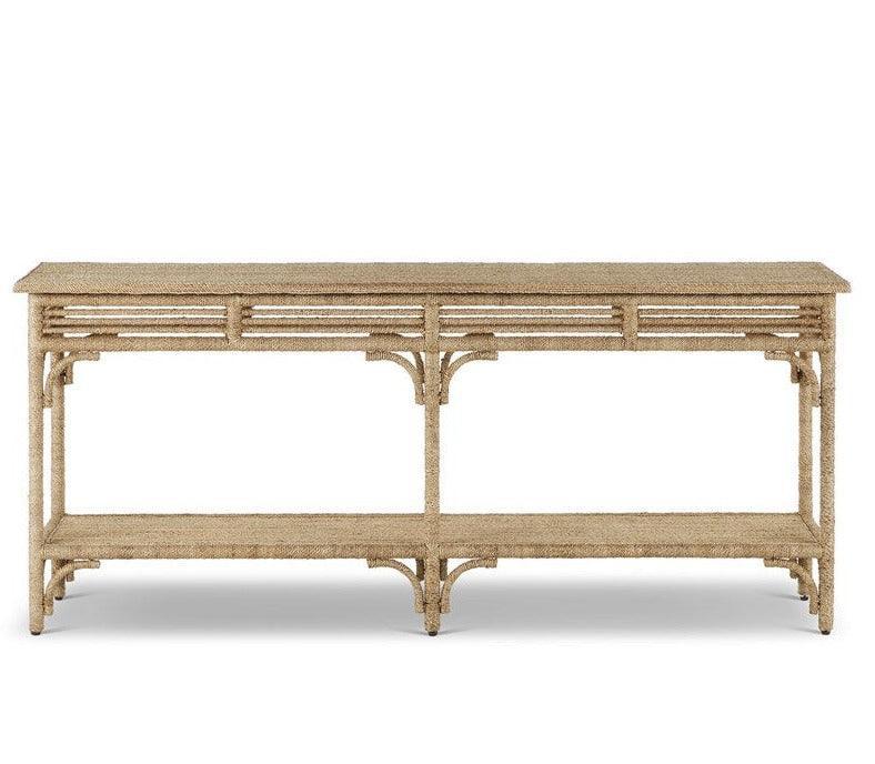 Un'alternativa sofisticata al rattan e al vimini, il tavolo consolle in corda di abaca intrecciata è sapientemente rivestito in una corda di abaca organica, che conferisce un fascino naturale a qualsiasi ambiente. La sua struttura finemente lavorata e le dimensioni generose lo rendono un elemento d'arredo accattivante in spazi grandiosi e maestosi, compresi ampi ingressi. Il materiale naturale in cui è rivestito lo rende inoltre una scelta ideale per le località costiere.