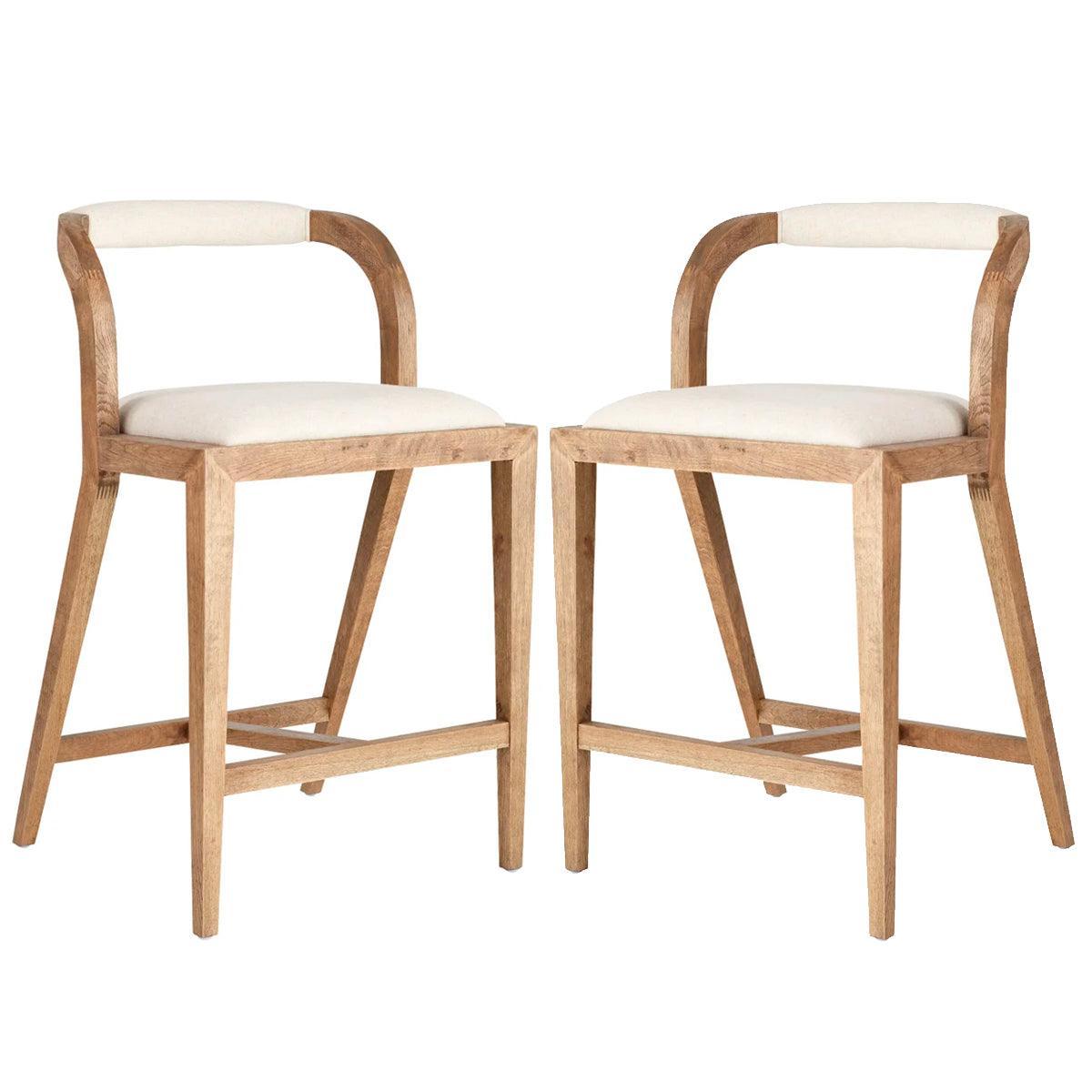 Realizzato in legno massello e lino, lo sgabello da bar in legno naturale con schienale curvo unisce il fascino rustico a un comfort lussuoso. La sua robusta struttura in faggio sostiene un morbido cuscino in lino, mentre le venature naturali del legno creano un meraviglioso contrasto con il tessuto color crema. Con un'altezza dello schienale di 3,6 m e un'altezza da terra a seduta di 7,9 m, questo sgabello pesa 10,9 kg, offrendo stile e resistenza.