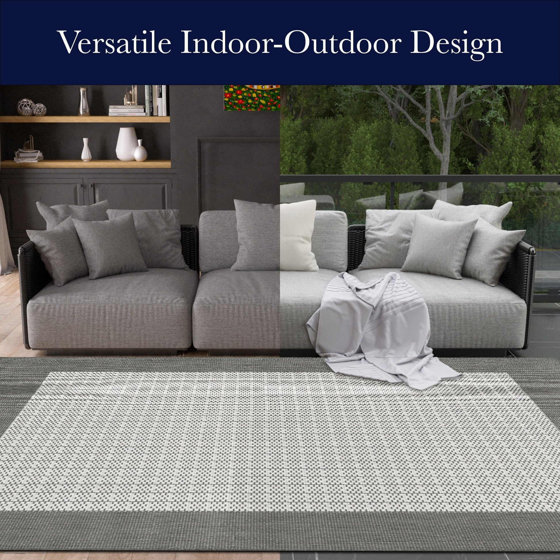Esalta l'aspetto del tuo spazio esterno e interno con il tappeto Pergola Quad per interni/esterni. Questo tappeto per interni/esterni è realizzato in polipropilene Courtron 100% arricchito con fibre e ha una struttura a trama piatta strutturata che offre comfort e stile superiori. Perfetto per ogni tipo di condizione atmosferica, questo tappeto è resistente ai raggi UV, a muffe e funghi, nonché impermeabile e antimacchia. Questo tappeto è incredibilmente elegante e funzionale, perfetto per patii, terrazze e altre aree esterne. È adatto ad animali domestici e bambini e viene fornito con una garanzia limitata di 1 anno per una maggiore tranquillità. Inoltre, è incredibilmente facile da pulire: basta spazzare o lavare con un getto d'acqua per una manutenzione perfetta per una famiglia impegnata. Disponibile in un'ampia gamma di dimensioni, tra cui passatoie e forme speciali come tondi e quadrati, aggiungi questo tappeto a qualsiasi stanza e guardalo trasformare lo spazio in qualcosa di speciale.