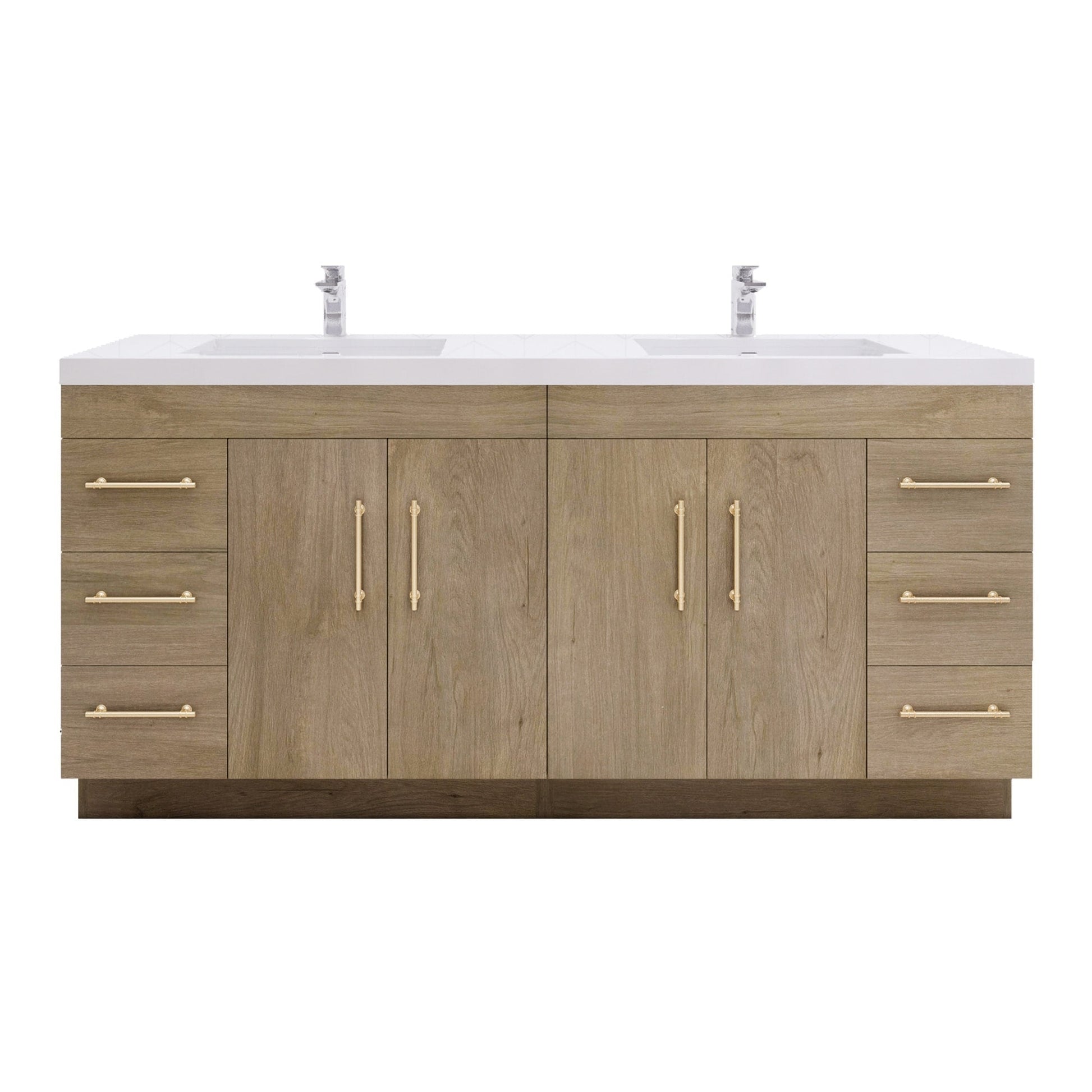 Vi presentiamo il mobile lavabo Eliza da 72'' con doppio lavabo, una sorprendente combinazione di design moderno e materiali di alta qualità. L'elegante maniglia e l'impiallacciatura lucida conferiscono un tocco di raffinatezza a qualsiasi bagno, mentre il robusto piano in acrilico garantisce una facile manutenzione e una lunga durata. Eliza è dotato di ferramenta europea di alta qualità con chiusura ammortizzata che garantisce un'esperienza di lusso in ogni momento.