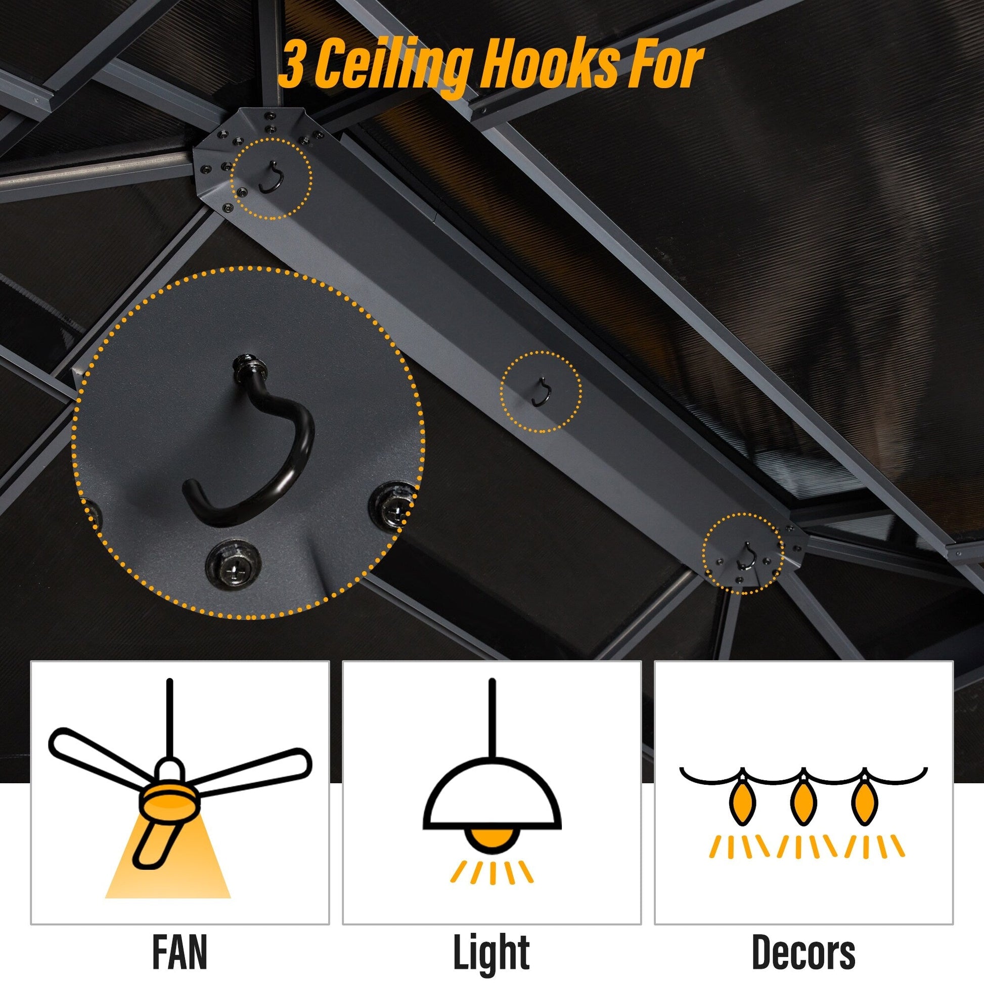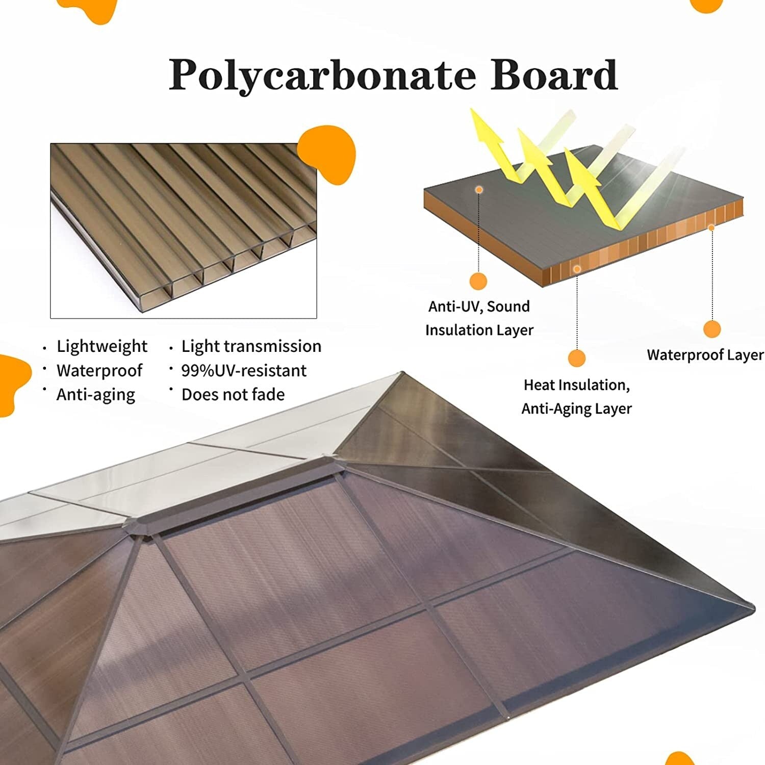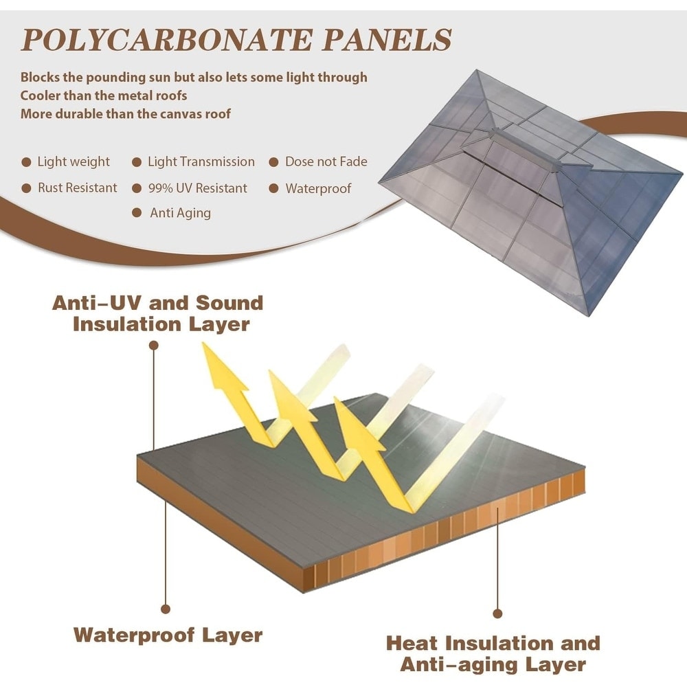Questo gazebo di alta gamma si adatta facilmente a diversi scenari: dalle grigliate in giardino ai picnic sul prato, dai tè pomeridiani al terrazzo, alle grigliate in giardino, alle riunioni in giardino o al relax a bordo piscina. Il suo design elegante offre una protezione ideale dall'ombra, mentre la struttura aperta non solo si adatta perfettamente alle attrezzature per barbecue, ma può ospitare anche un tavolo da pranzo con sedie per 7-9 persone , migliorando la vostra esperienza all'aperto, dal caffè del mattino ai banchetti serali, con il massimo comfort e praticità.