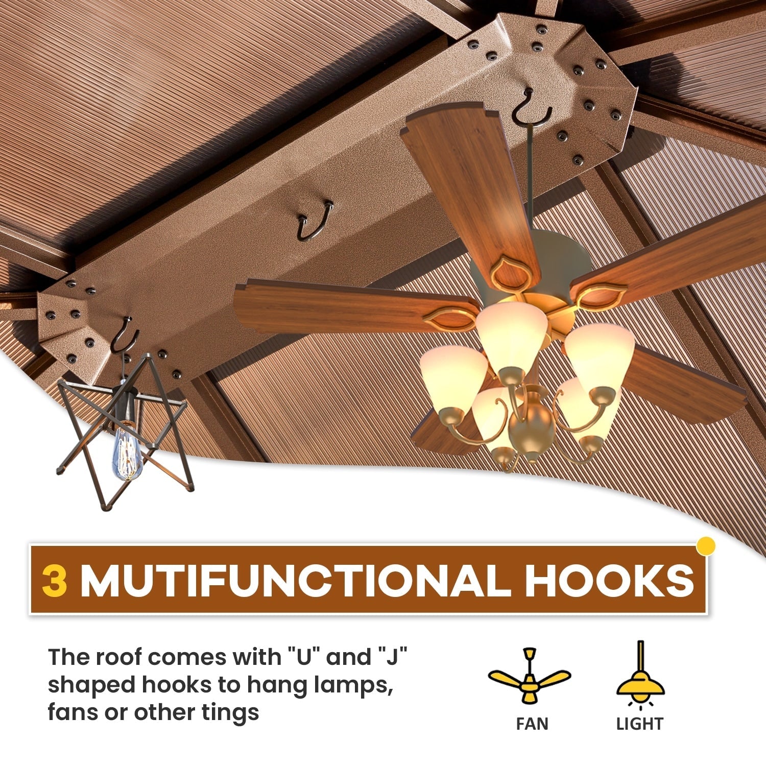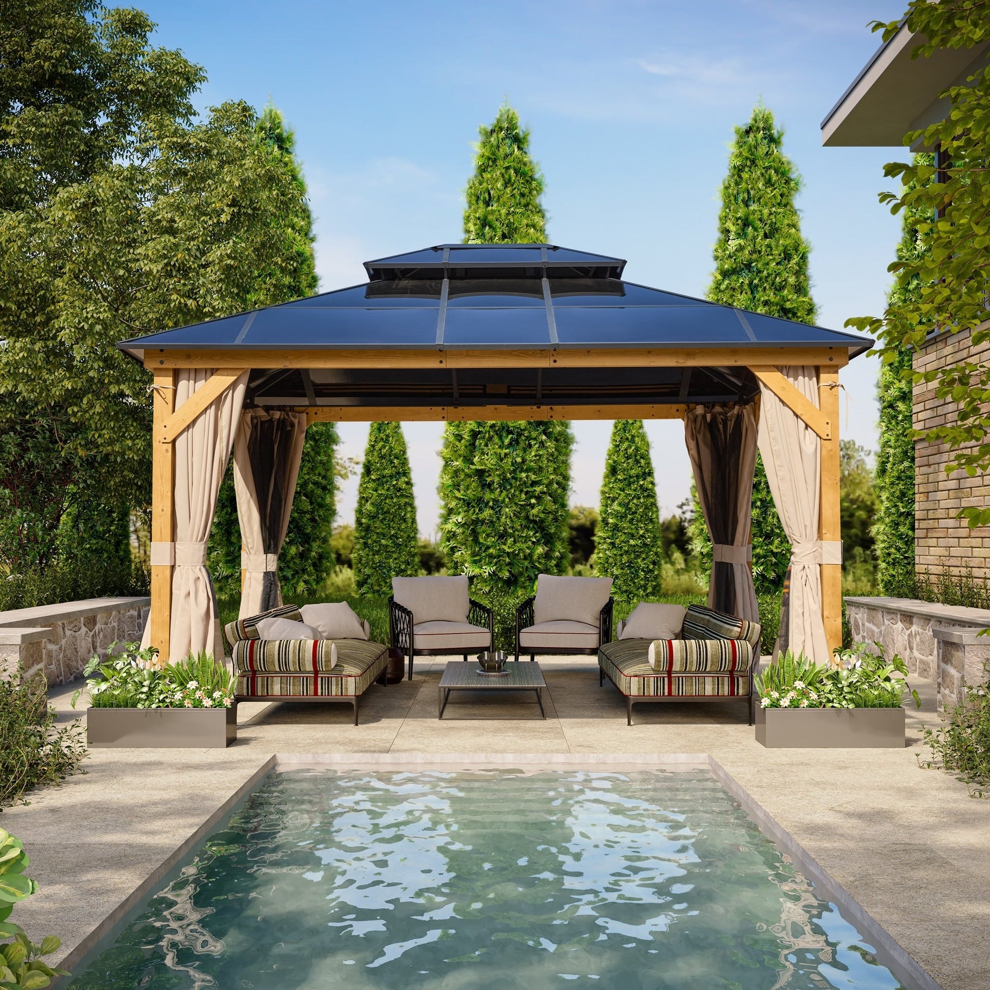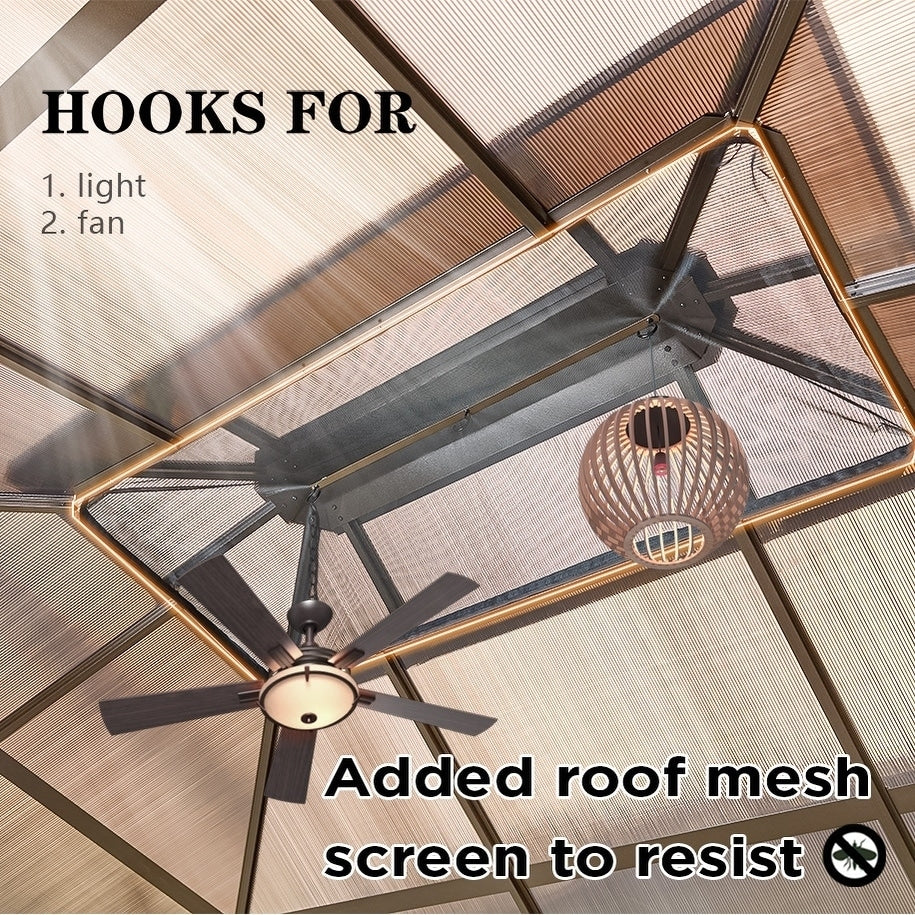 Gazebo rigido EROMMY, pergolato per esterni con doppio tetto, rete e tende, tettoia resistente per patio, cortile, feste in piscina
