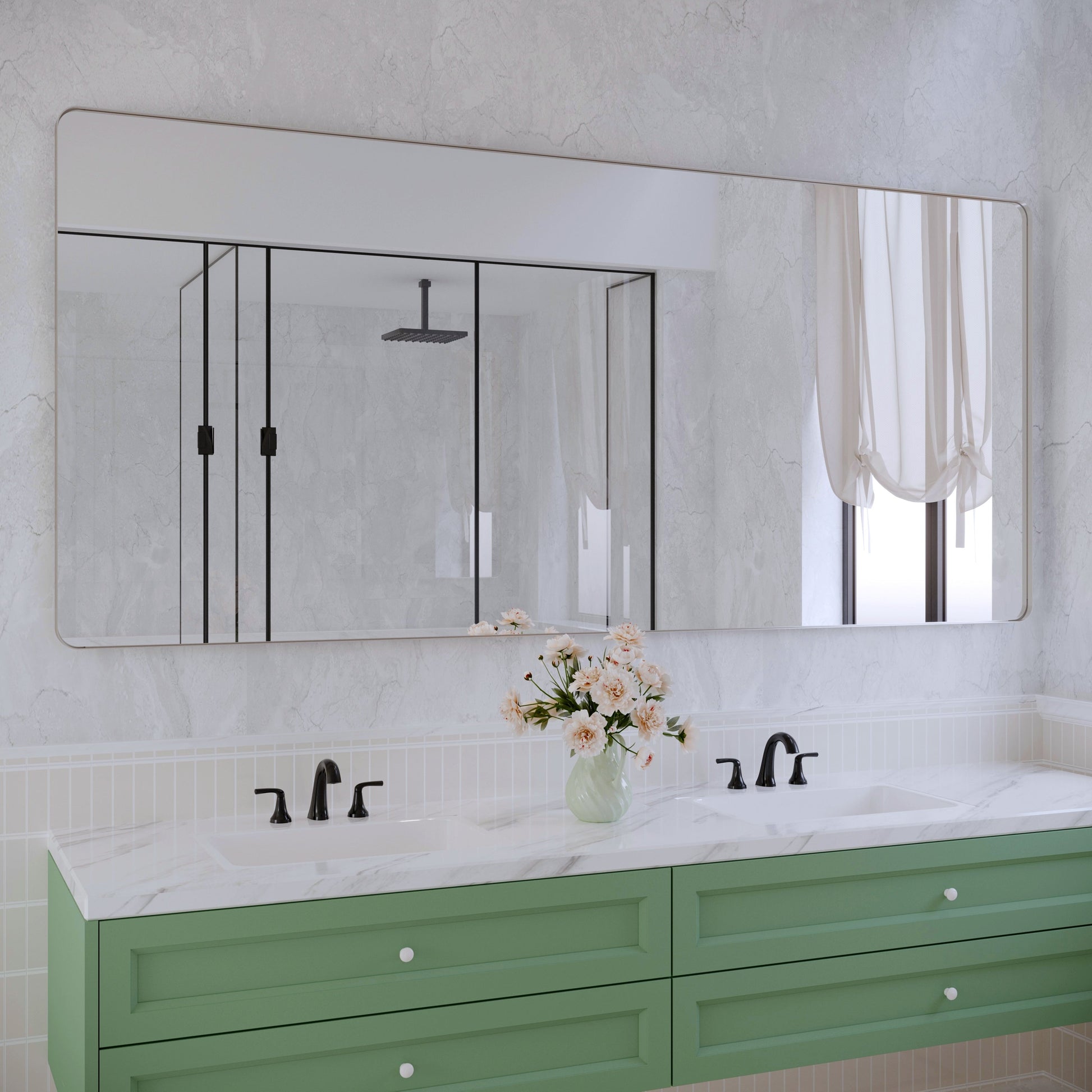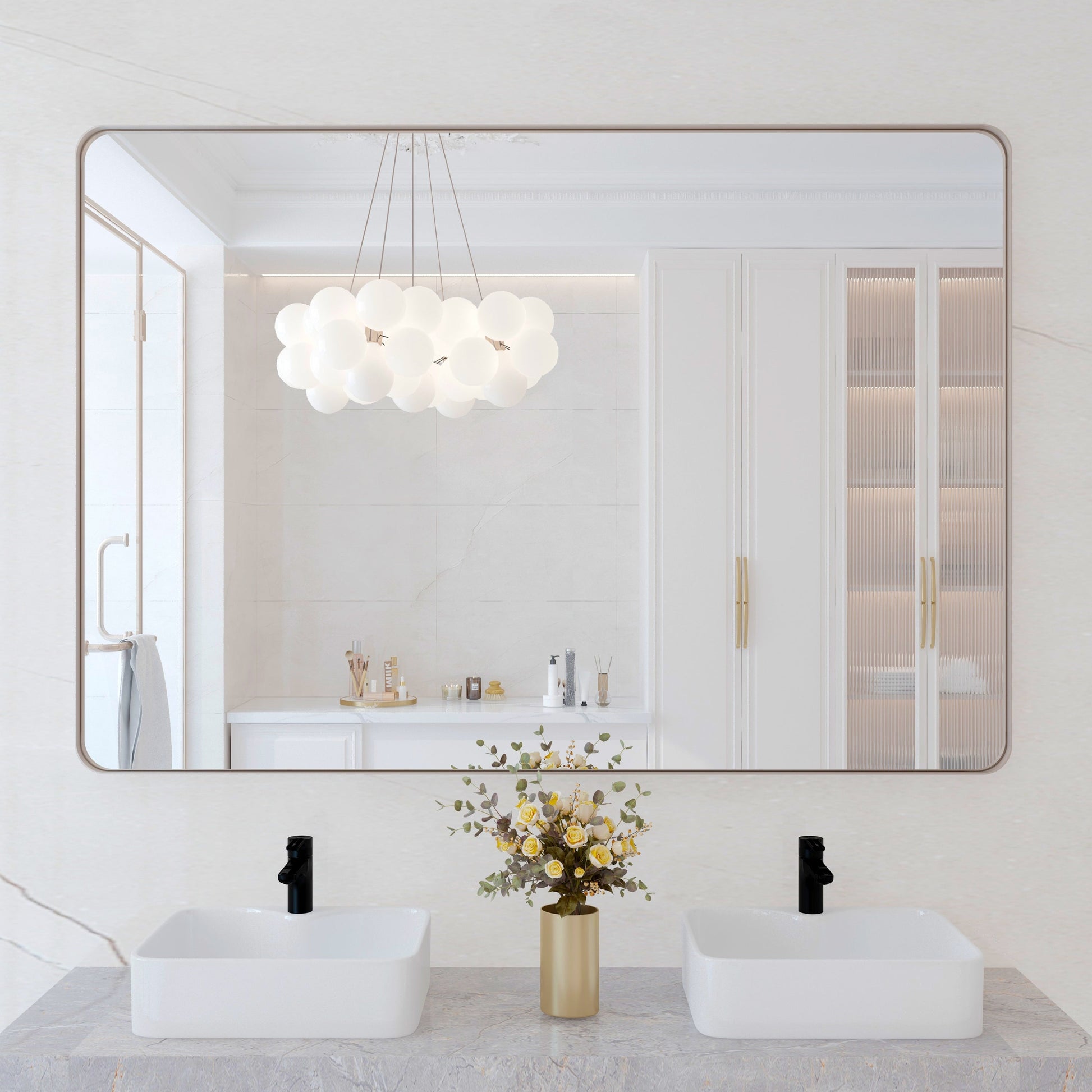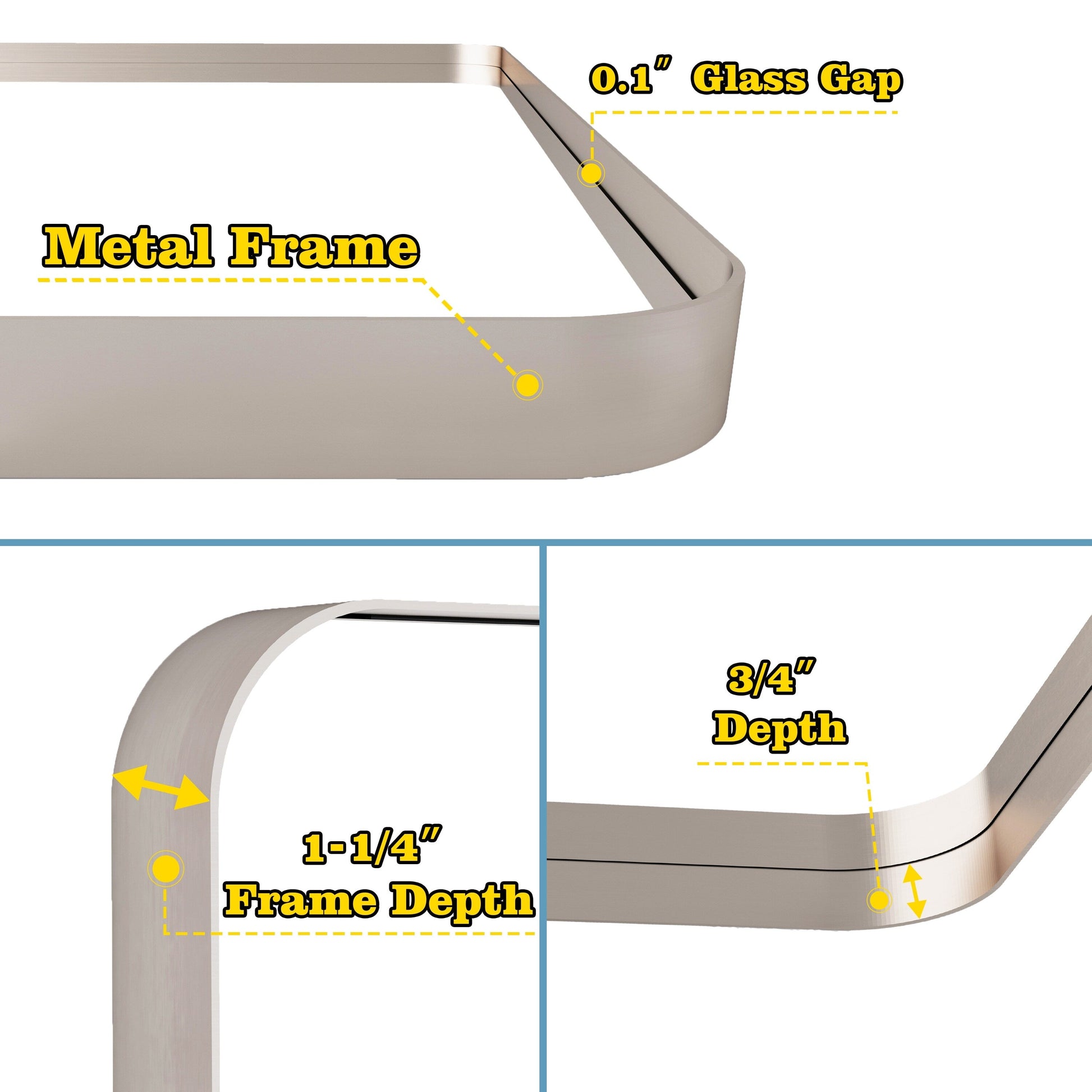 Questo specchio è dotato di una cornice in lega di alluminio di alta qualità con verniciatura a forno ispessita, che previene l'ossidazione e la corrosione. La finitura classica si adatta a una varietà di stili di arredamento, dal rustico al moderno. Progettato in diverse dimensioni, è uno specchio contemporaneo perfetto per il bagno, il mobiletto della camera da letto, il soggiorno, l'ingresso, l'hotel, l'arredamento della casa o il salone.
