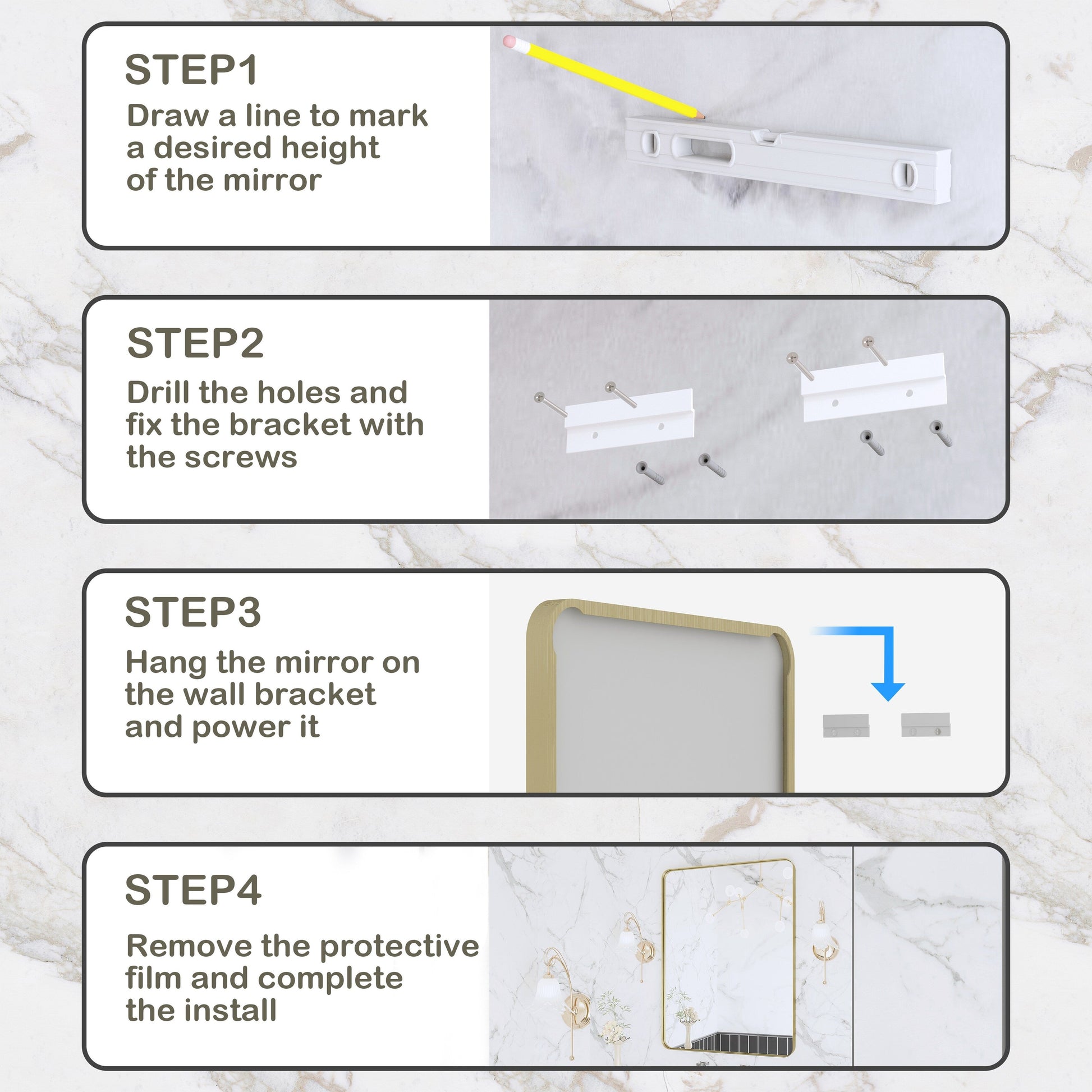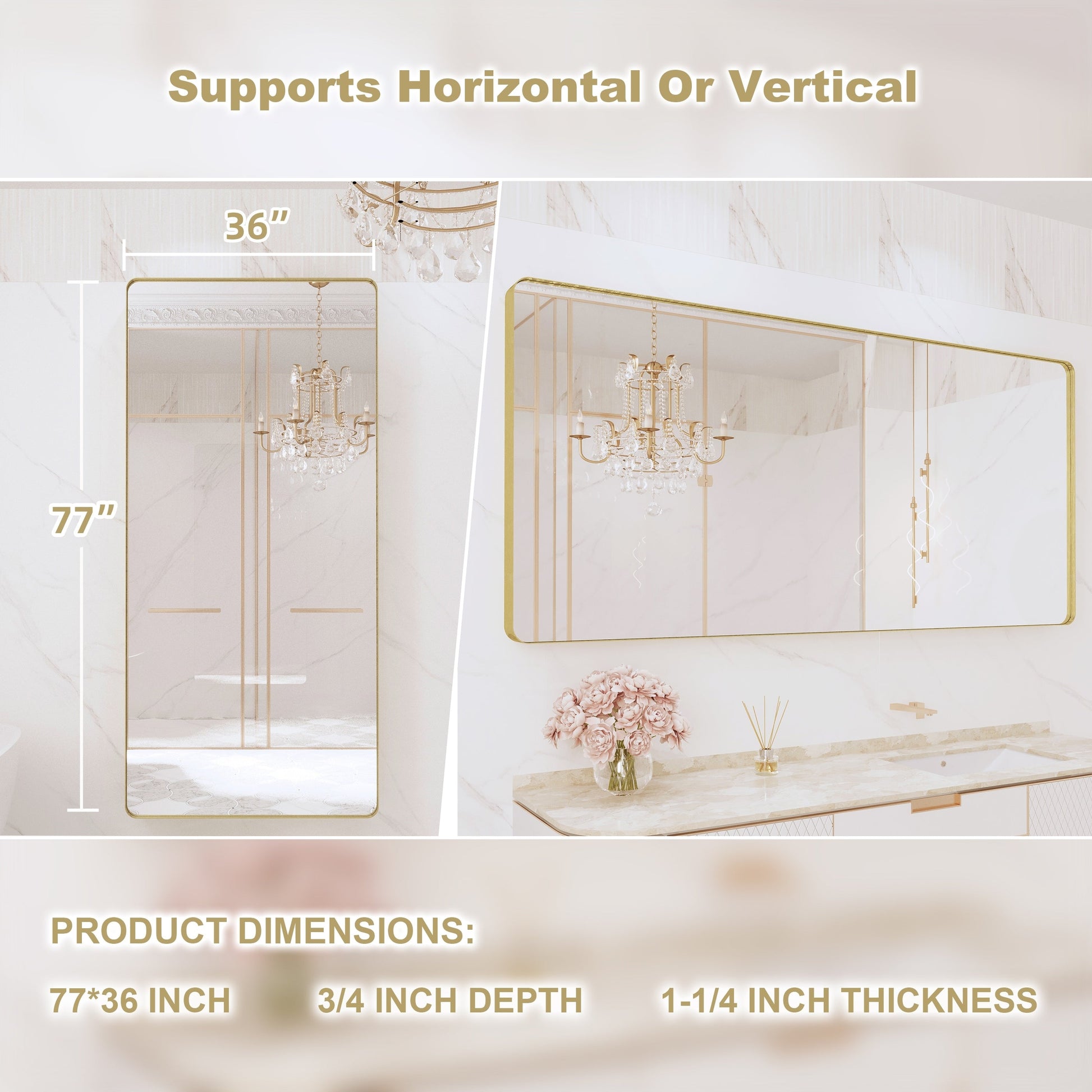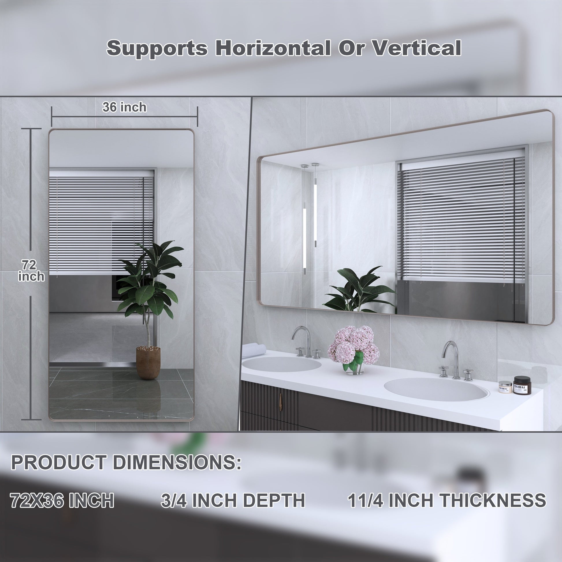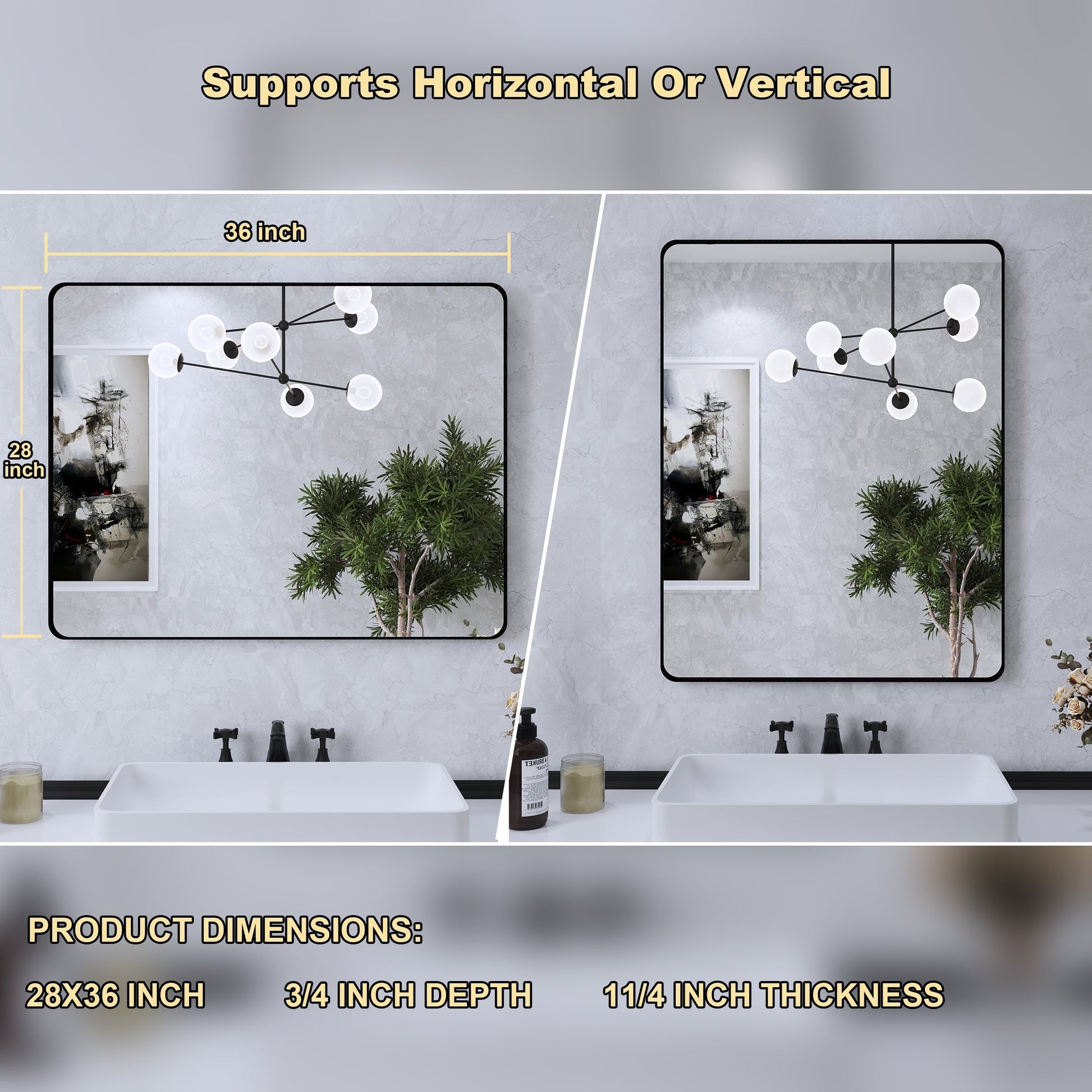 - 3. Installazione facile e regolabile: basta individuare e installare 4 viti e 2 staffe incluse, puoi appendere lo specchio verticalmente o orizzontalmente e l'installazione sarà completa in 10 minuti!