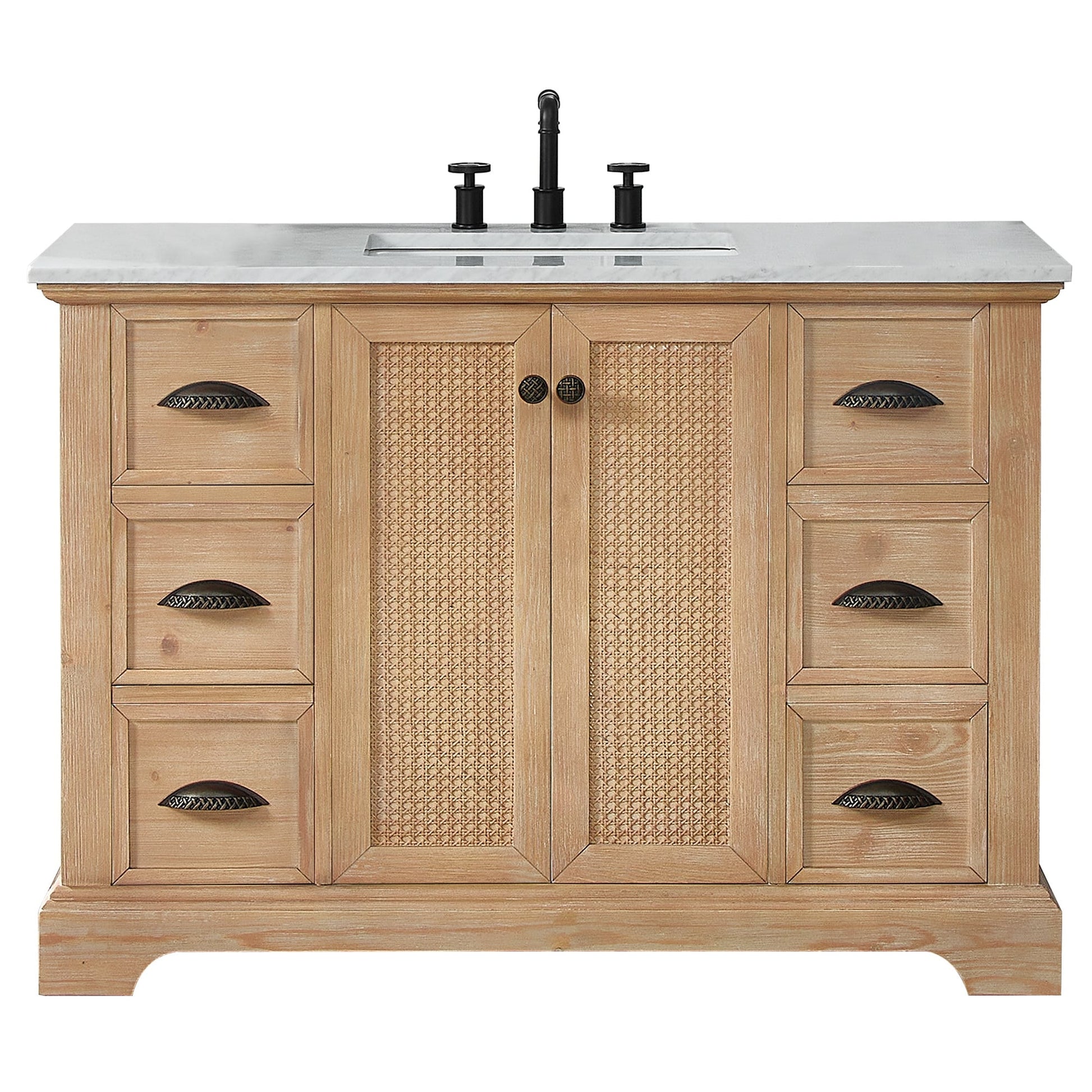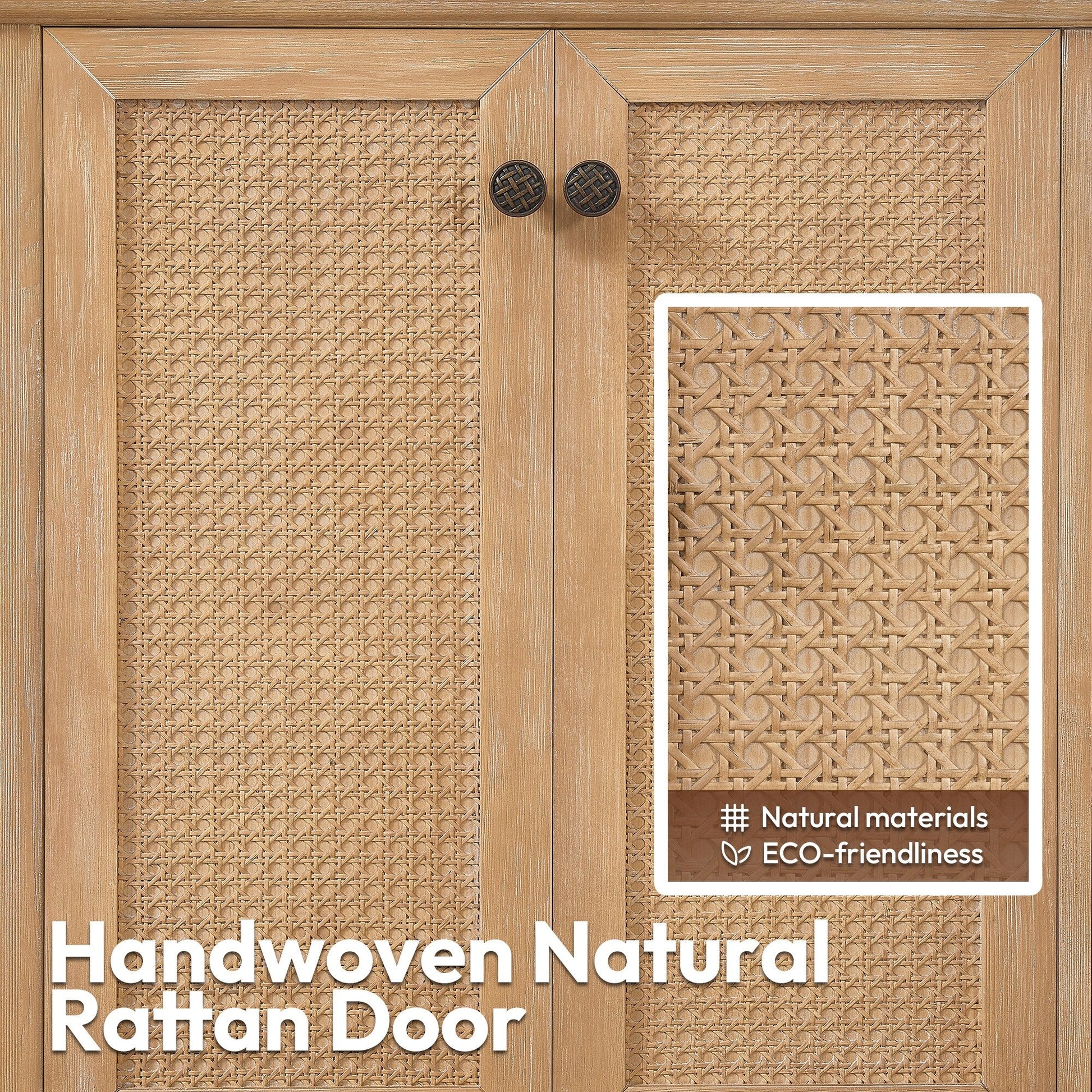 48 pollici - Due ante a chiusura ammortizzata con pannello in rattan e bambù e sei robusti cassetti a coda di rondine con chiusura ammortizzata.