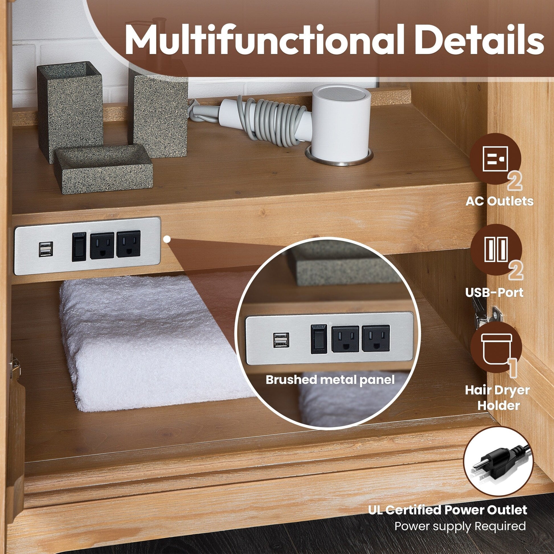 · Funzionalità pratica: le prese di corrente e USB integrate certificate UL offrono un modo pratico per alimentare gli apparecchi per la cura della persona e la bellezza. Include un pratico organizer per asciugacapelli che mantiene il tuo strumento preferito a portata di mano.