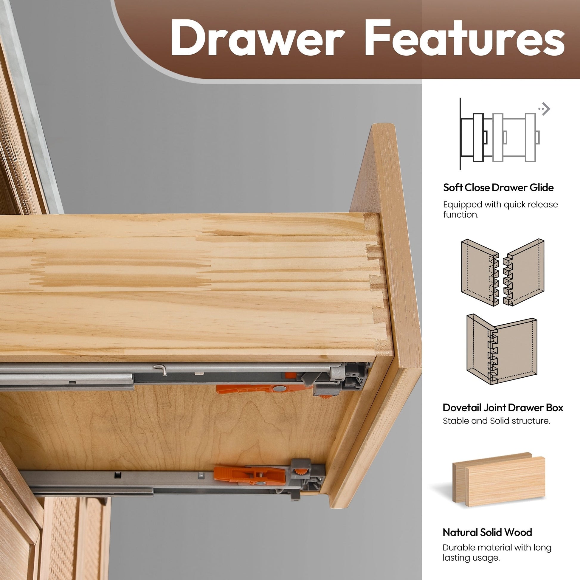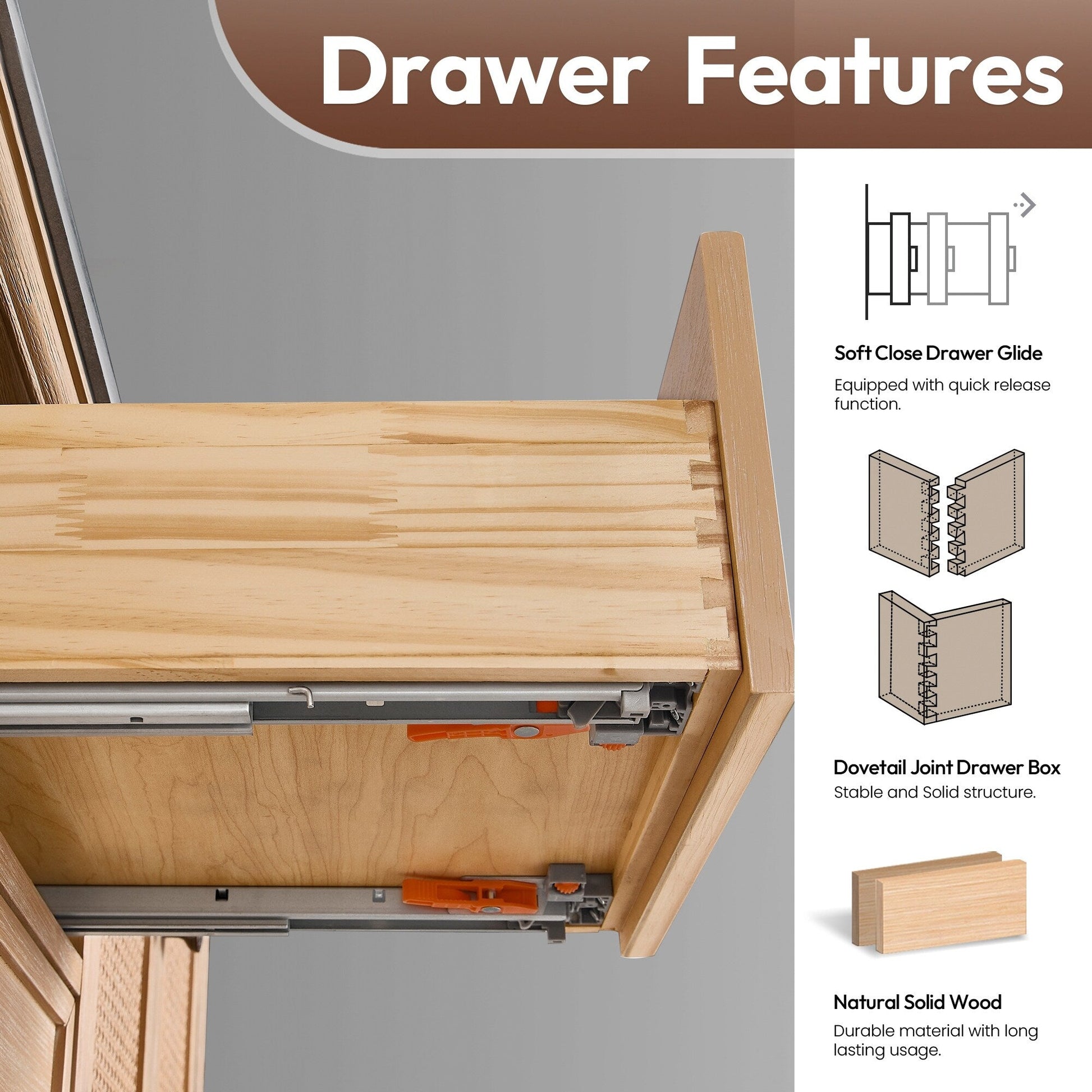 36 pollici - Un'anta con chiusura ammortizzata e pannello in rattan e bambù e tre robusti cassetti a coda di rondine con chiusura ammortizzata.