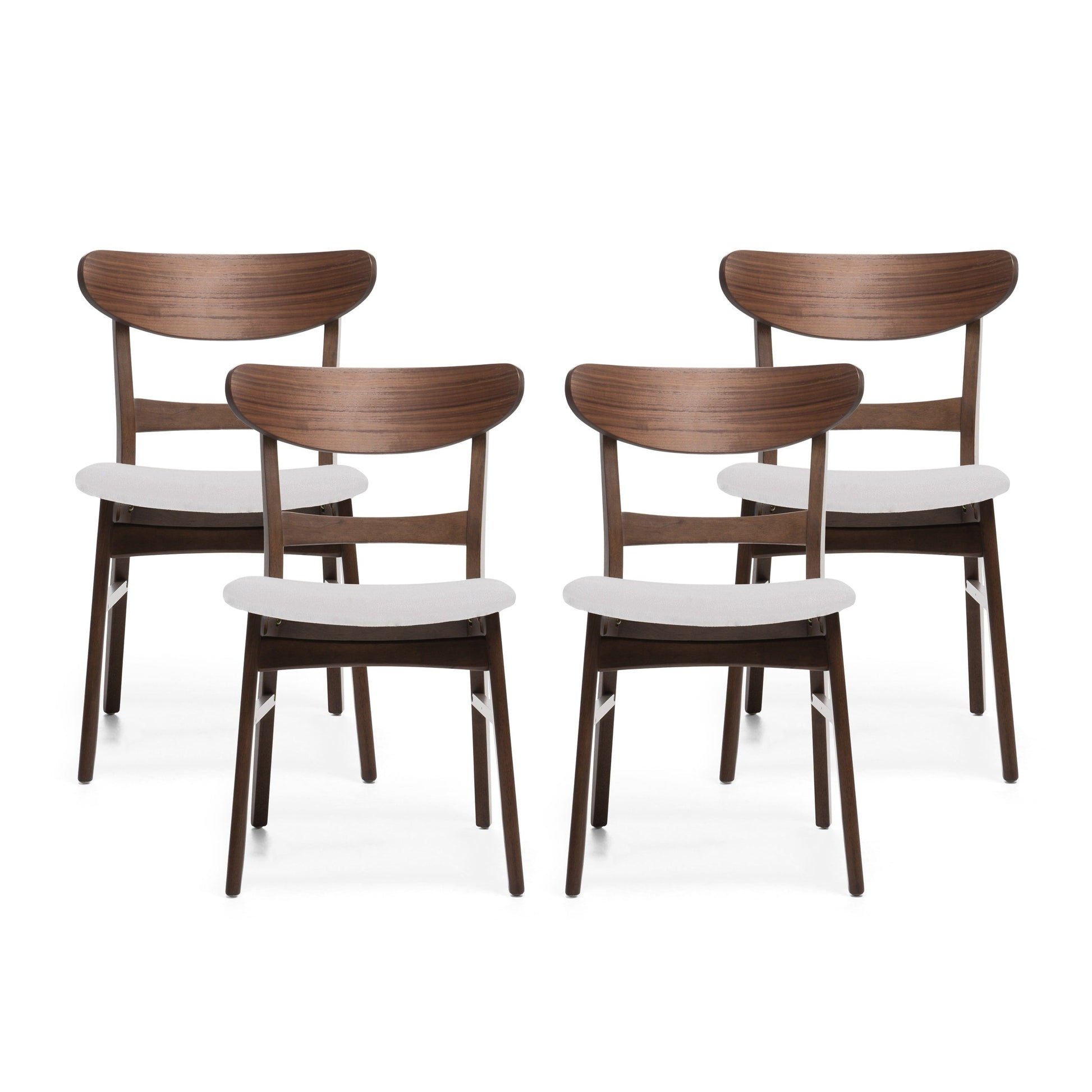 Aggiungi un tocco di eleganza in stile moderno di metà secolo alla tua sala da pranzo con le sedie da pranzo Idalia di Christopher Knight Home. Caratterizzato dalle iconiche gambe divaricate e dalle linee pulite, questo set di quattro sedie senza braccioli è perfetto per aggiungere raffinatezza a qualsiasi spazio. Le sedie sono realizzate con una robusta struttura in legno di caucciù e sedute imbottite in schiuma per un supporto stabile. Gli schienali delicatamente curvi e le splendide finiture delle strutture in legno aggiungono un aspetto raffinato a queste sedie. Scegli tra sei diverse opzioni, ognuna caratterizzata da una splendida venatura naturale, abbinata a una finitura straordinaria e sedute splendidamente imbottite. Il montaggio è richiesto e tutte le istruzioni e gli attrezzi necessari sono inclusi.