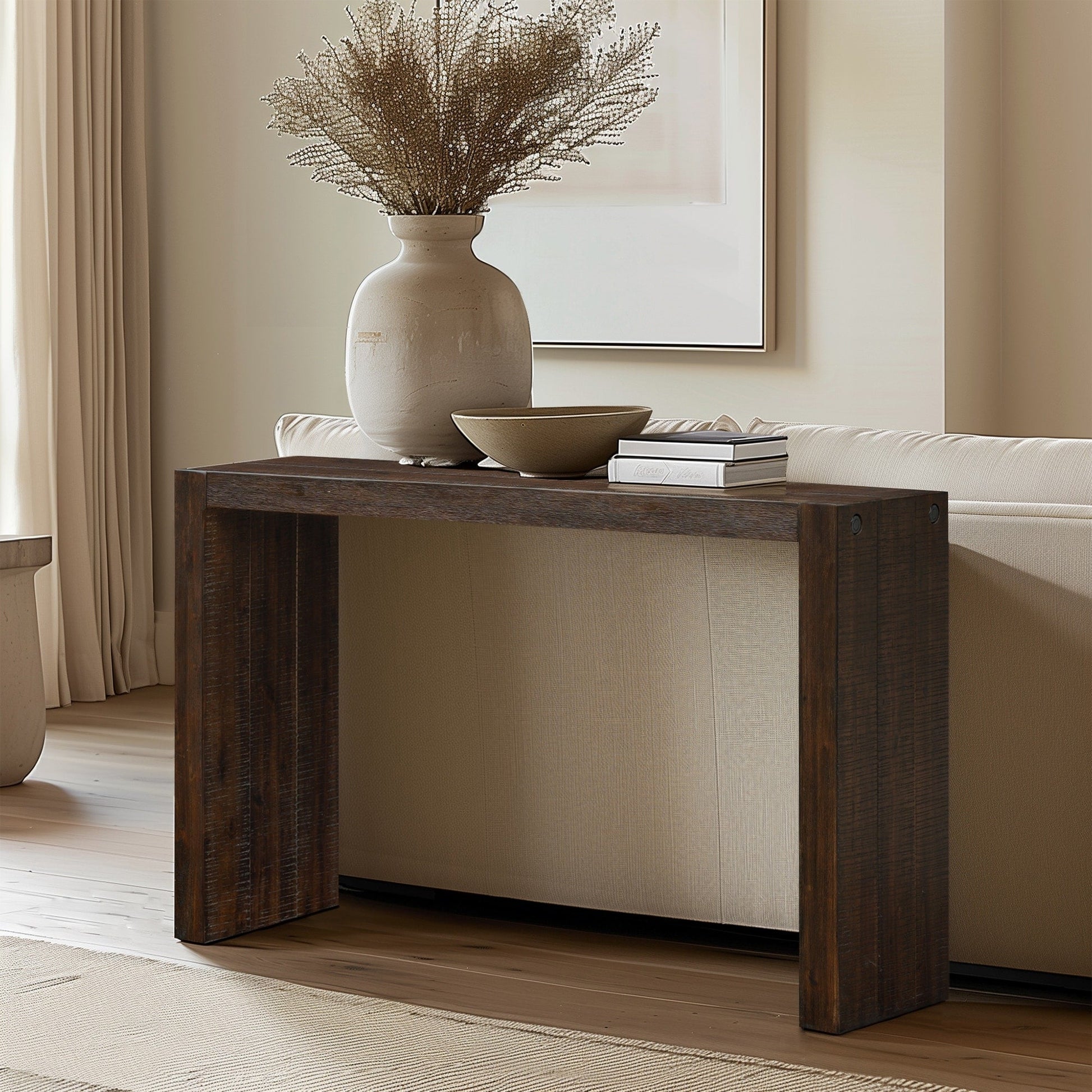 Moderno tavolo consolle in legno massello con linee pulite e una finitura ricca per un fascino senza tempo