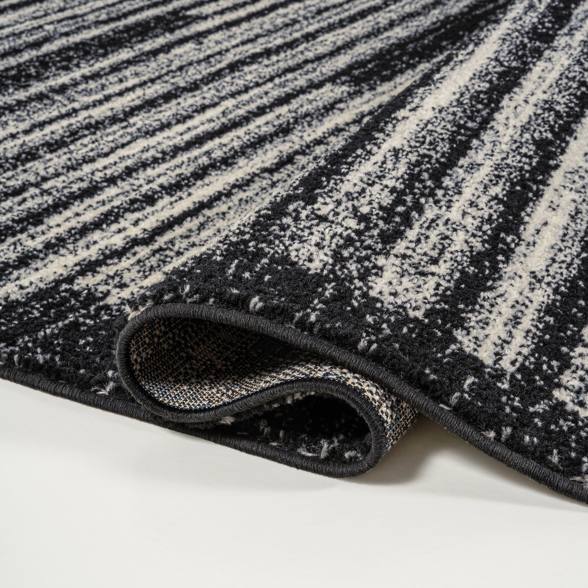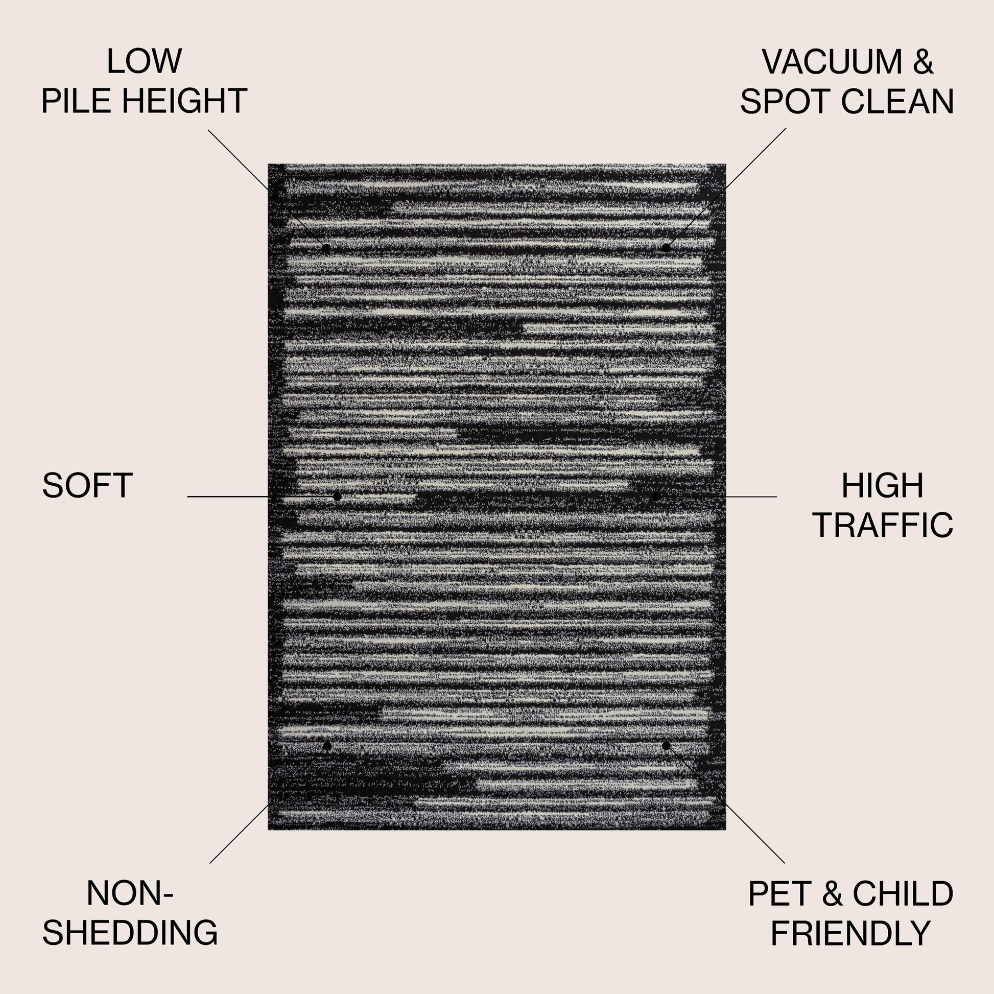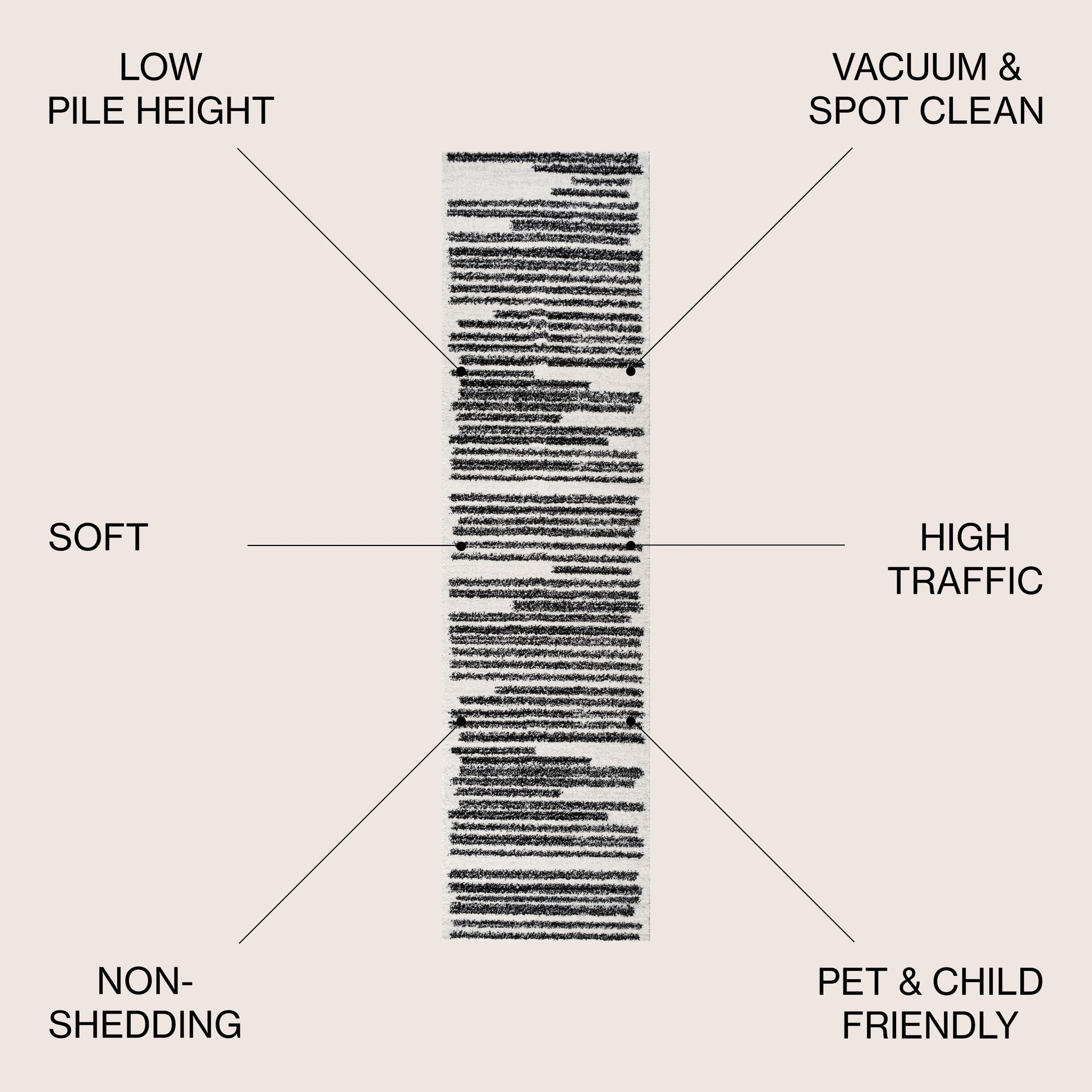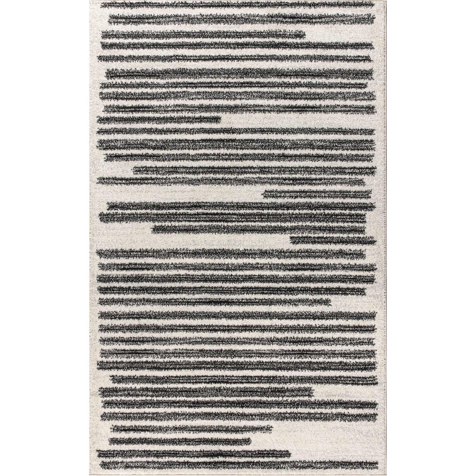 Ispirato ai tappeti marocchini d'epoca, il nostro moderno tappeto a righe è realizzato con telaio meccanico a pelo corto. Il motivo a righe e barre sfalsate è tessuto in nero su sfondo avorio; i fili intrecciati ricordano i tradizionali tappeti tessuti a mano. Aggiungi un tocco di stile anni '50 alla tua casa con questo tappeto di facile manutenzione.