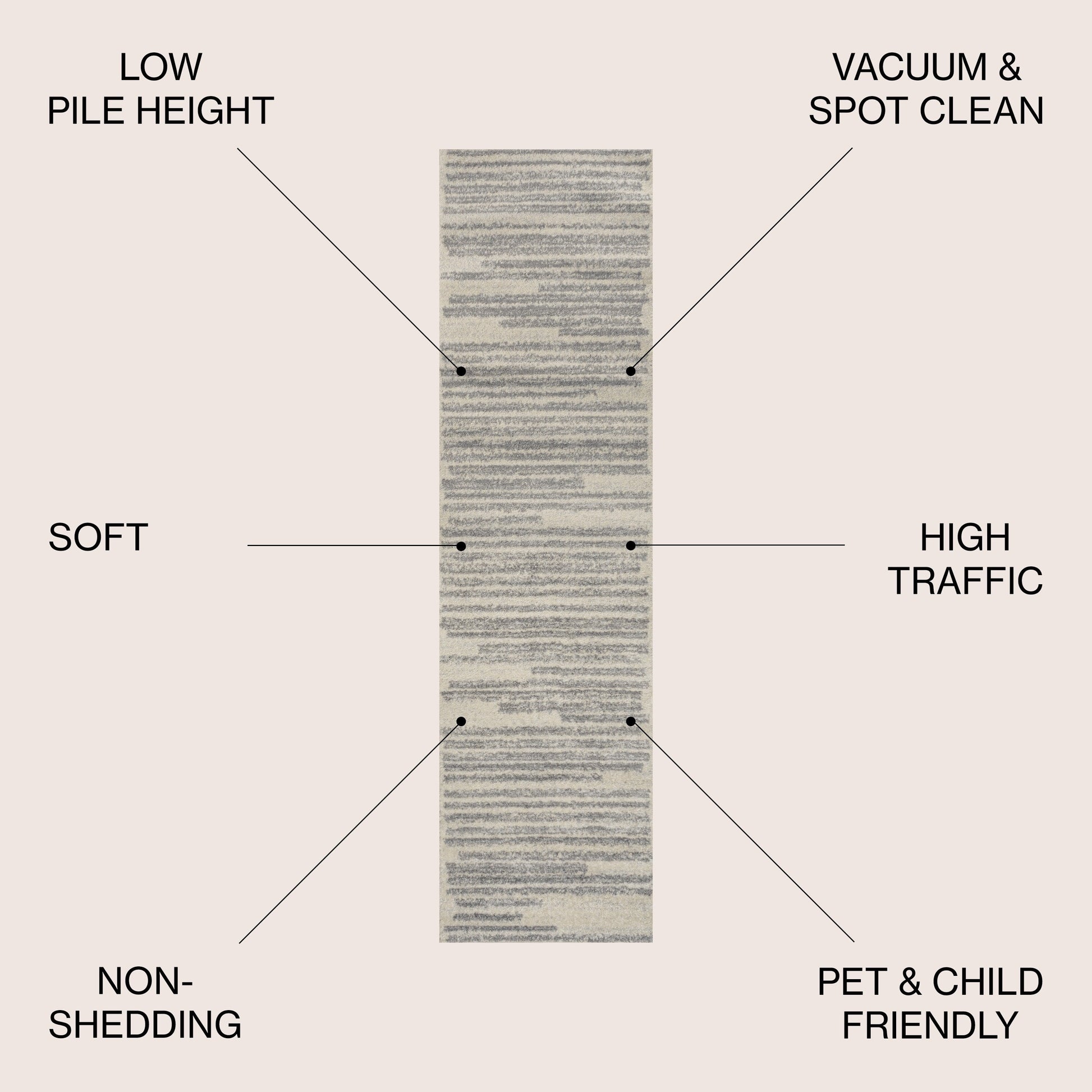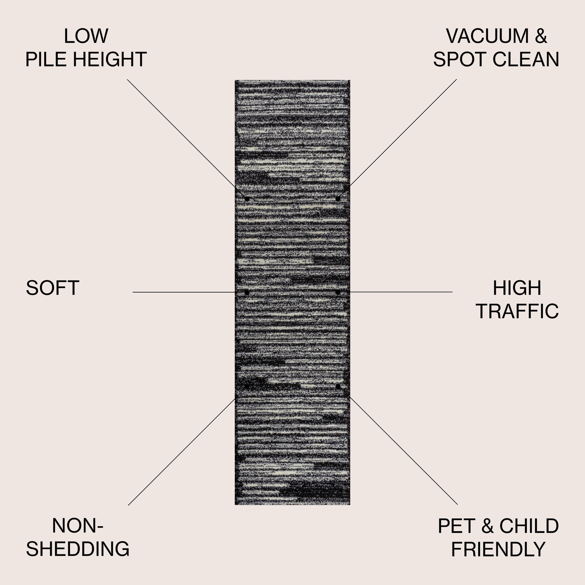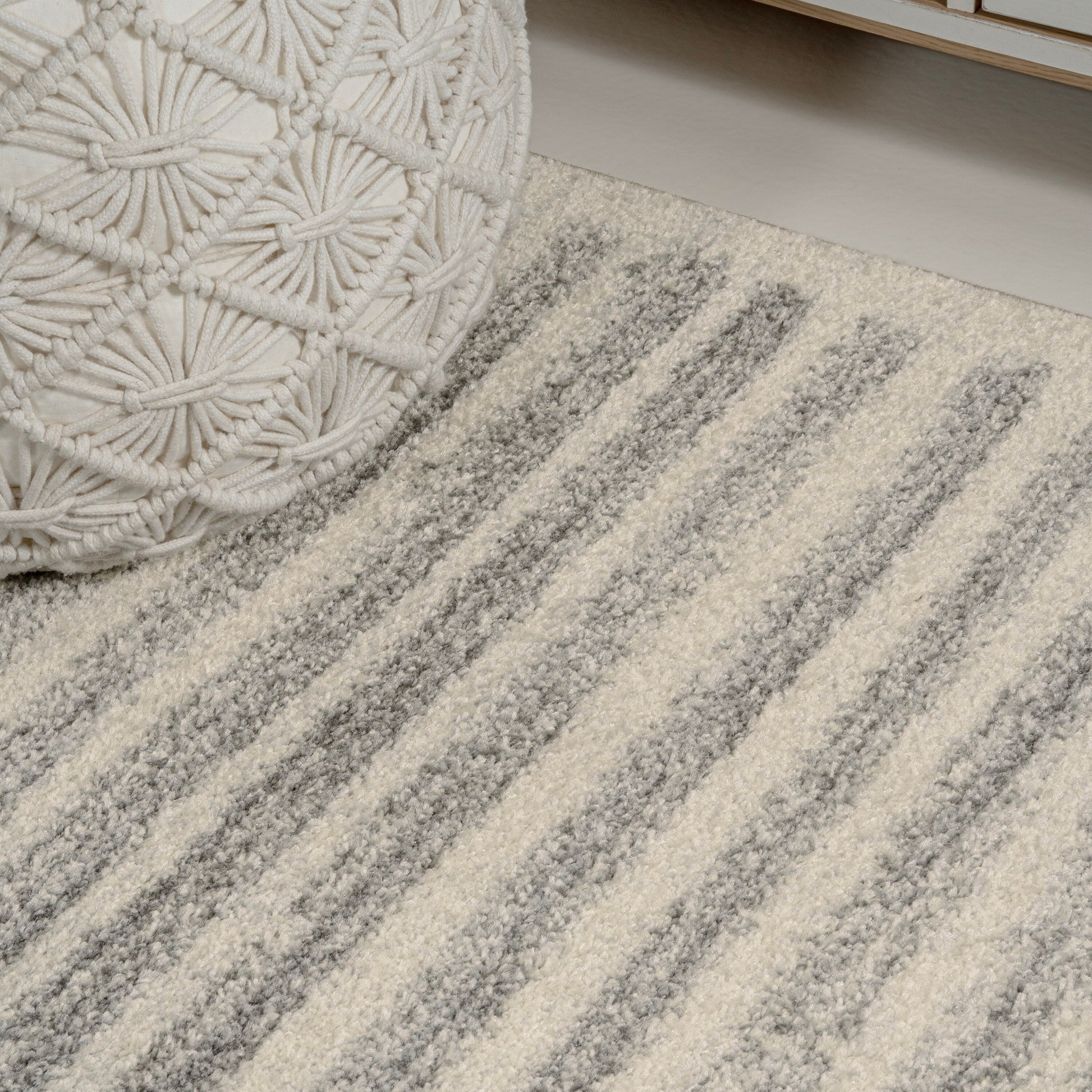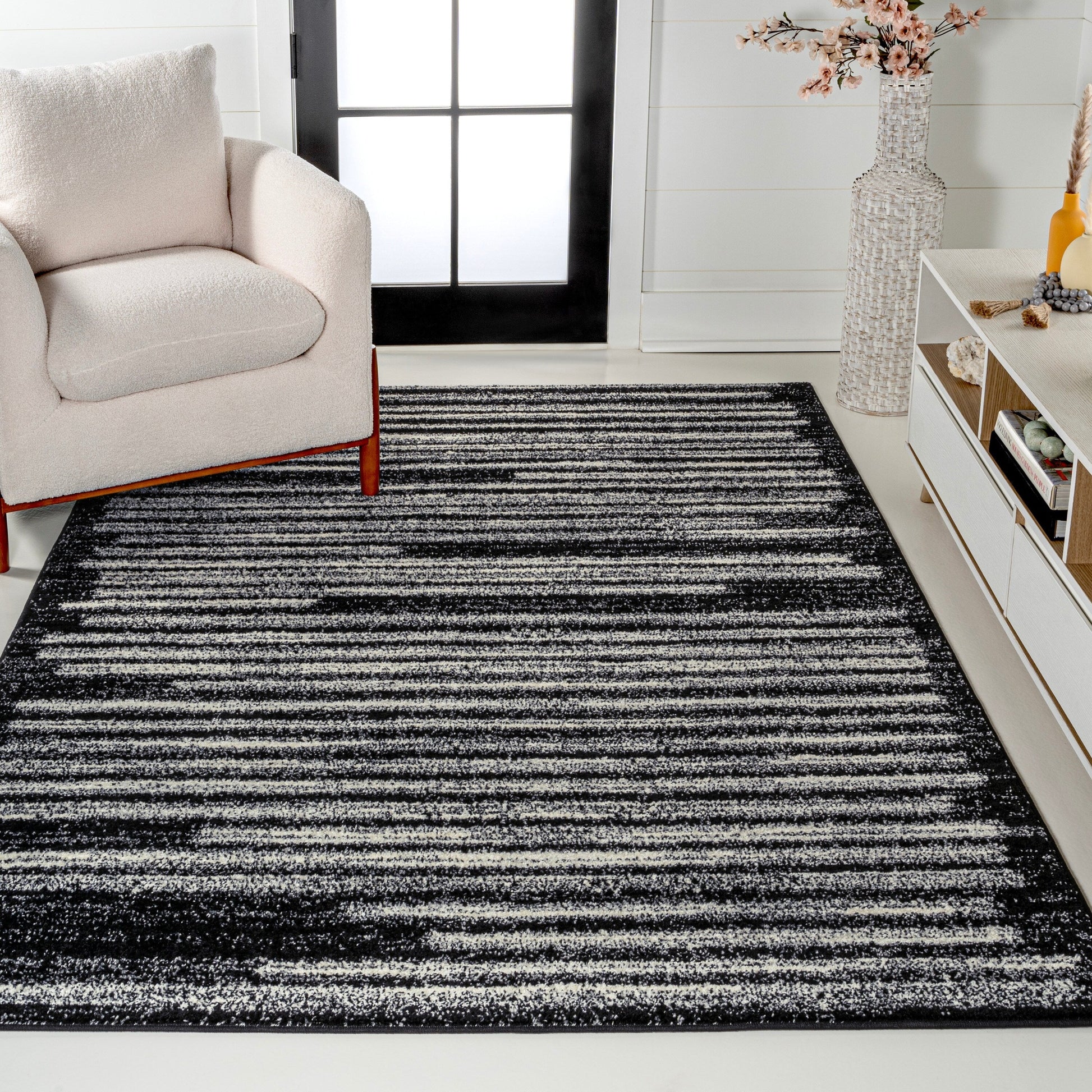 Ispirato ai tappeti marocchini d'epoca, il nostro moderno tappeto a righe è realizzato con telaio meccanico a pelo corto. Il motivo a righe e barre sfalsate è tessuto in nero su sfondo avorio; i fili intrecciati ricordano i tradizionali tappeti tessuti a mano. Aggiungi un tocco di stile anni '50 alla tua casa con questo tappeto di facile manutenzione.