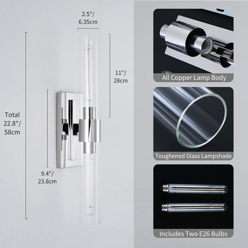 Dimensioni delle lampade da parete: l'altezza della moderna applique è di 57 cm, la larghezza è di 6,1 cm, le dimensioni del paralume in vetro sono di 6,1 cm e quelle del baldacchino di 1,2 cm. Sorgente luminosa: attacco E26, tensione: 110-220 V per tutto il mondo. È completamente dimmerabile se utilizzata con una lampadina dimmerabile e interruttori dimmer compatibili.