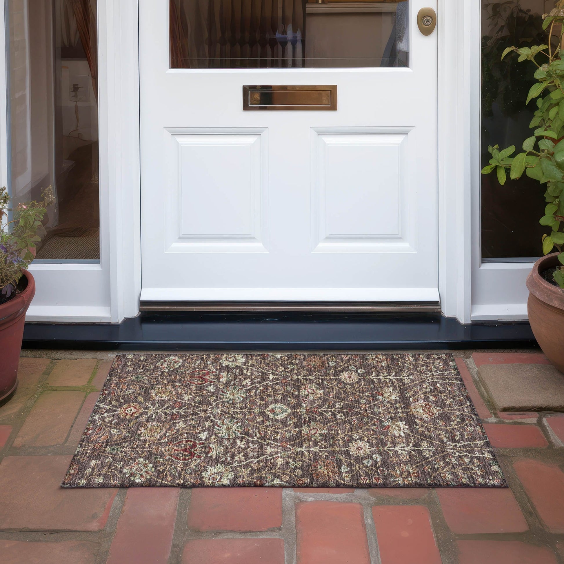 Il nostro tappeto, decorato con un motivo a tralci di vite e dettagliati motivi floreali, dona un tocco di eleganza a qualsiasi ambiente. Questo design di transizione si adatta perfettamente sia ad arredi tradizionali che contemporanei. Stabilizzato ai raggi UV per l'uso in vari ambienti, mantiene il suo aspetto vivace sia all'interno che all'esterno. La struttura ultrasottile consente un posizionamento senza sforzo e la sua natura lavabile in lavatrice garantisce una facile manutenzione, perfetta per le famiglie con animali domestici e bambini. Tutti i tappeti esposti a lunghi periodi di luce solare intensa e diretta possono perdere colore nel tempo. I nostri tappeti offrono prestazioni migliori in aree esterne coperte e in aree scoperte con meno ore di luce solare diretta. Il profilo ultrasottile consente un'asciugatura rapida dopo la pioggia o la pulizia all'esterno. I tappeti di dimensioni maggiori potrebbero non entrare in una lavatrice domestica. Possono essere lavati in una lavatrice di dimensioni commerciali o lavati all'esterno con acqua e sapone delicato. Lasciare asciugare all'aria, non in lavatrice. Sebbene ogni tappeto abbia già un supporto antiscivolo, la necessità di cuscini aggiuntivi o ambienti con aree ad alta trazione potrebbe richiedere un sottotappeto aggiuntivo.