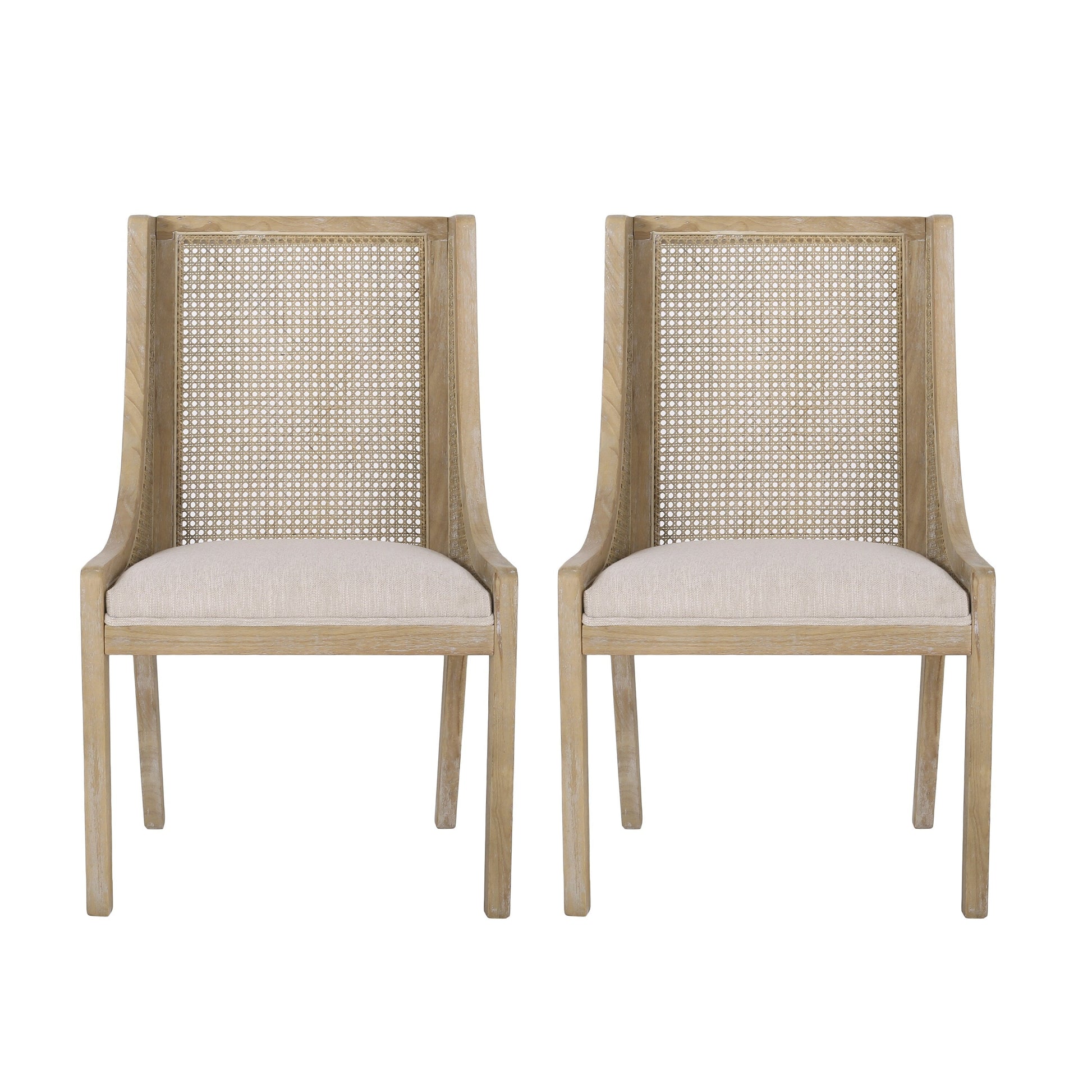 Porta a casa un tocco di carattere rustico, ricco di texture straordinarie e design invitante. Traendo ispirazione da un'affascinante atmosfera rustica, il nostro delizioso set di sedie da pranzo presenta splendidi schienali realizzati in vimini intrecciato, sedute imbottite e braccioli elegantemente inclinati, che conferiscono alla tua zona pranzo una bellezza naturale e rigorosa. Ogni sedia presenta una struttura in legno volutamente invecchiato che mette in risalto linee e curve meravigliosamente contrastanti, ideali sia per pranzi informali in famiglia che per cene sontuose con i tuoi ospiti.