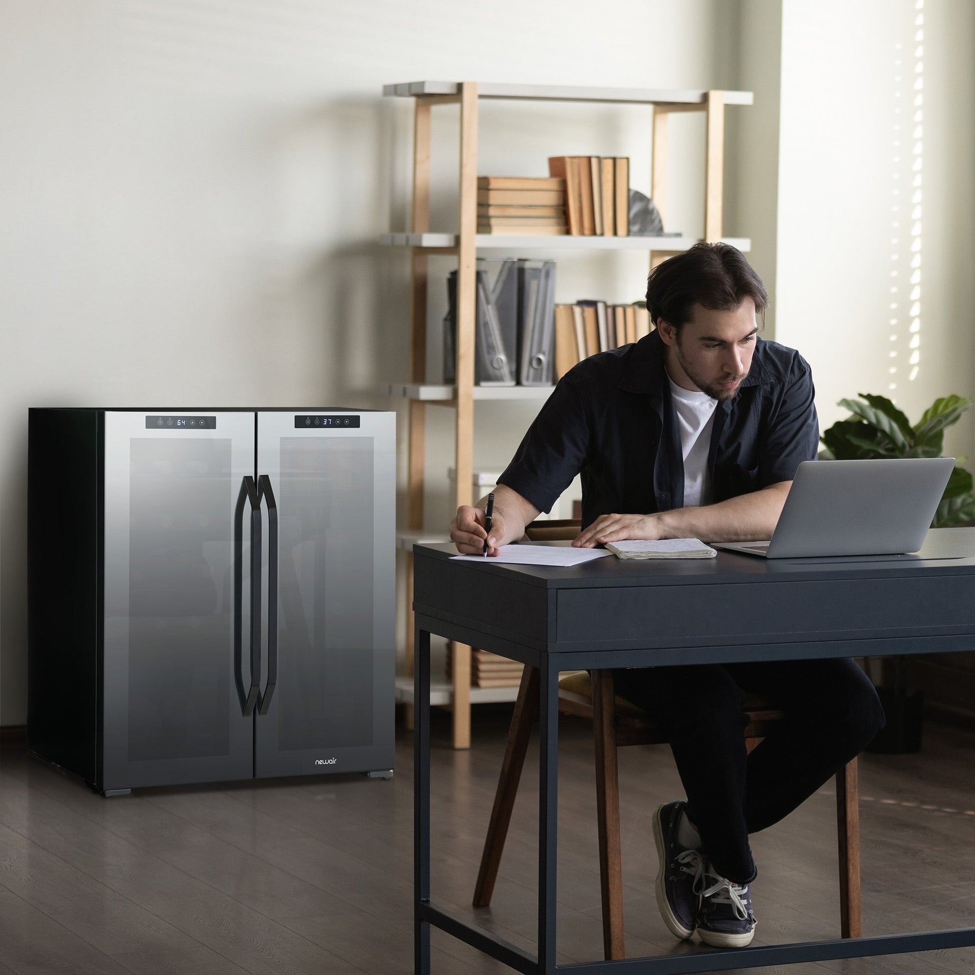 Dopo una lunga giornata, non c'è niente di meglio della compagnia di buoni amici, del buon cibo e un buon bicchiere di vino. Il frigorifero per vino e bevande Newair Shadowᵀᴹ Series ti permette di goderti le cose più belle della vita, e lo fa anche con un aspetto fantastico. Il design elegante e moderno presenta una porta in vetro a specchio che si integra perfettamente con il tuo arredamento, resistendo a macchie e impronte digitali. Il doppio vetro blocca i dannosi raggi UV per proteggere il sapore e l'aroma del tuo vino. Il resistente pannello di controllo è integrato direttamente nel vetro, permettendoti di selezionare la temperatura perfetta con facilità. Non è mai stato così facile, o più elegante, servire la tua annata preferita.
