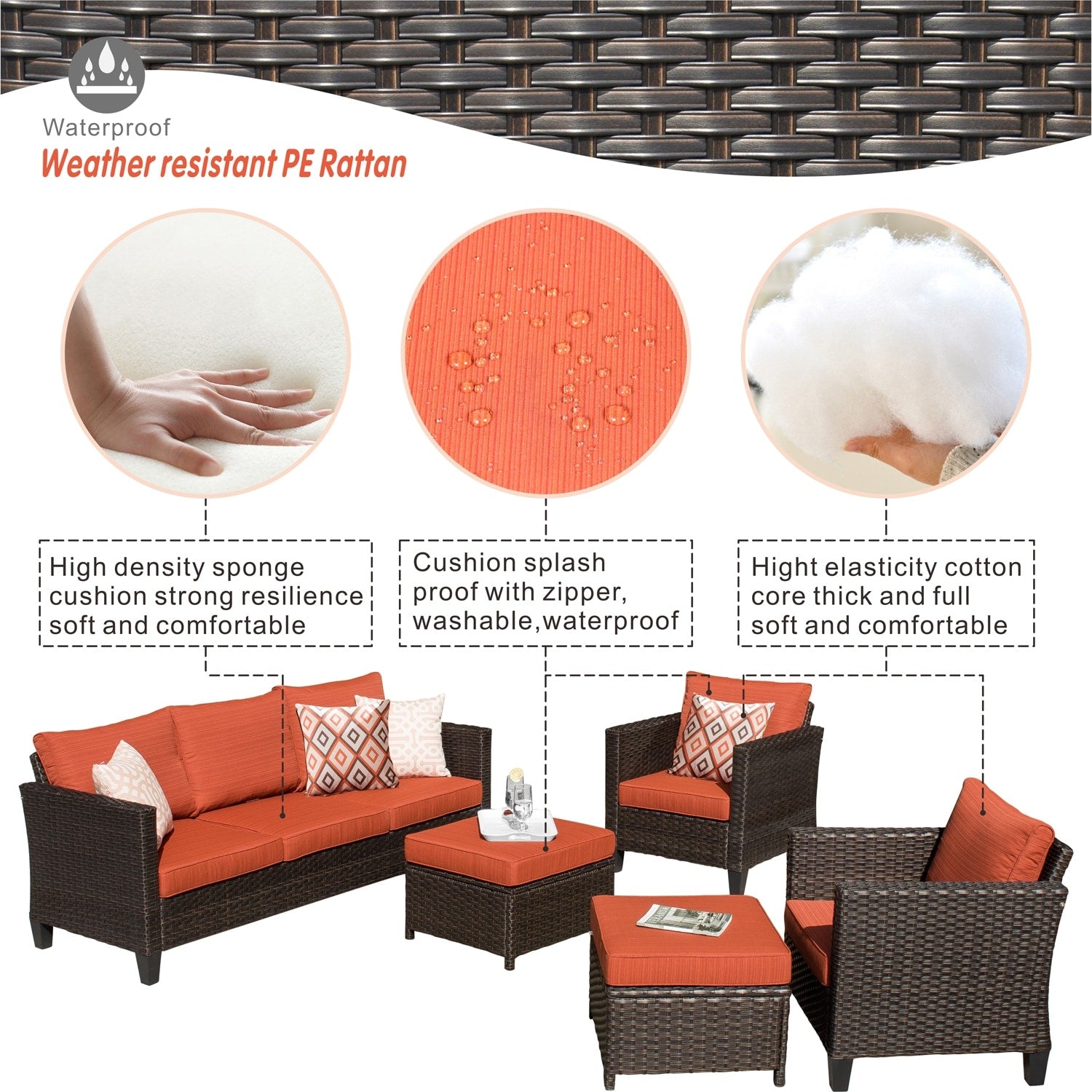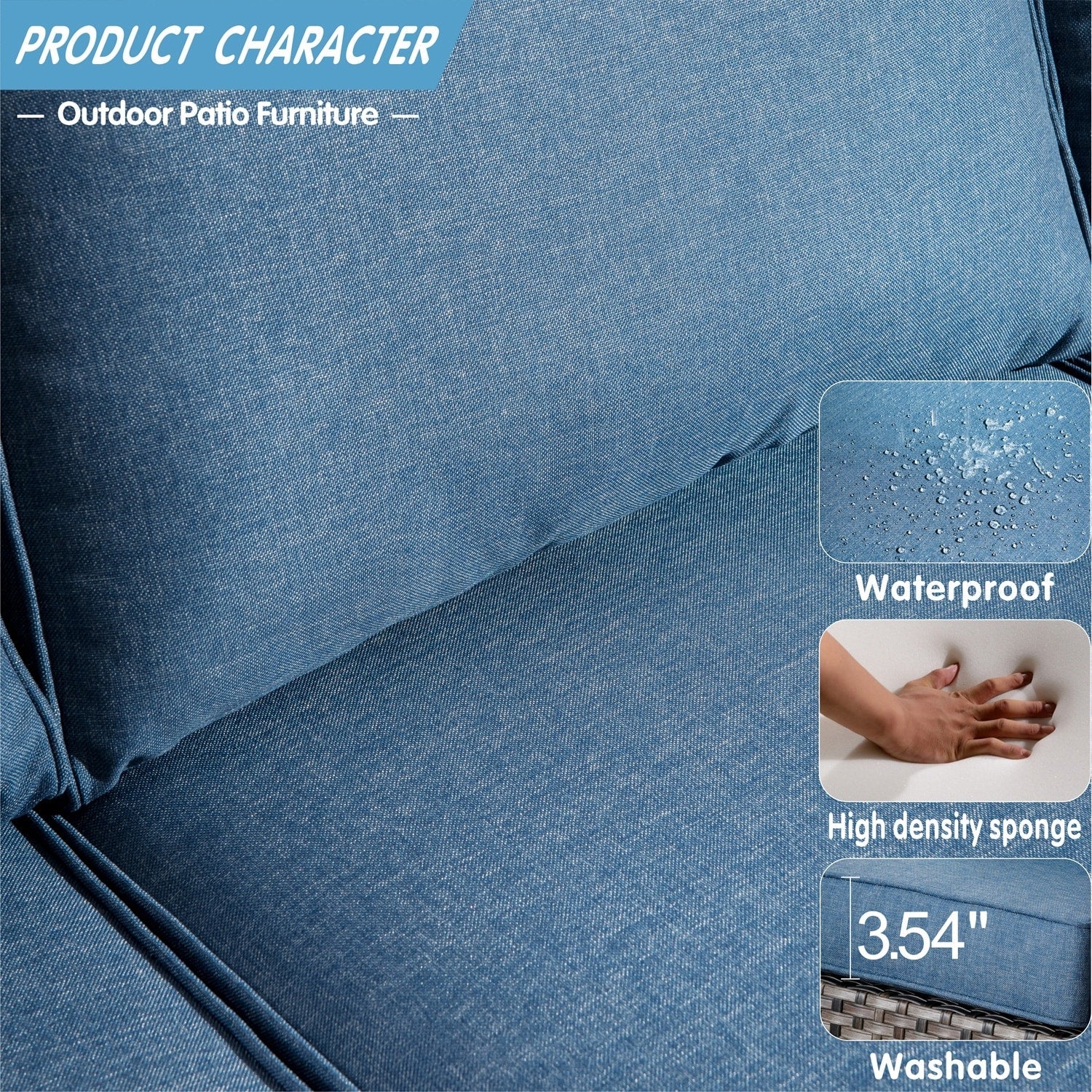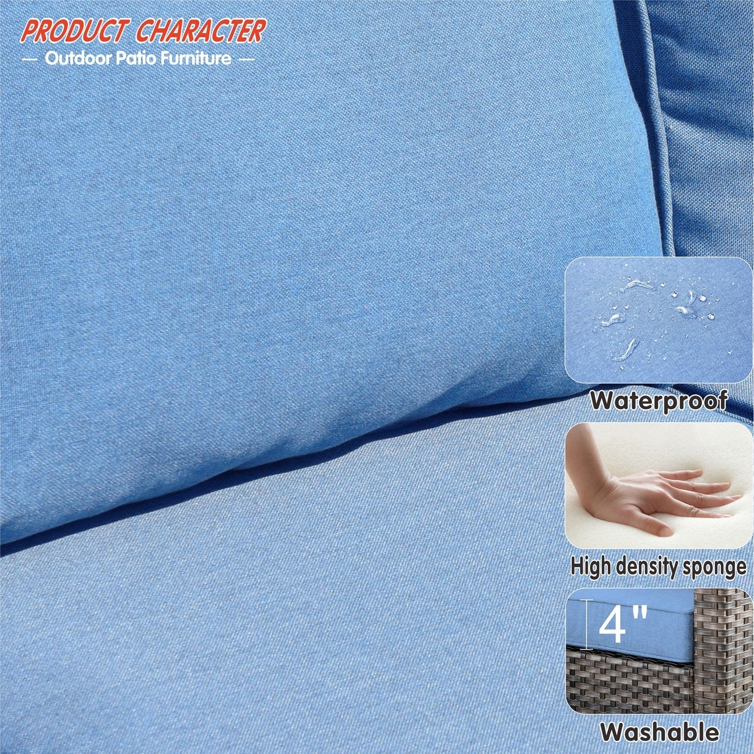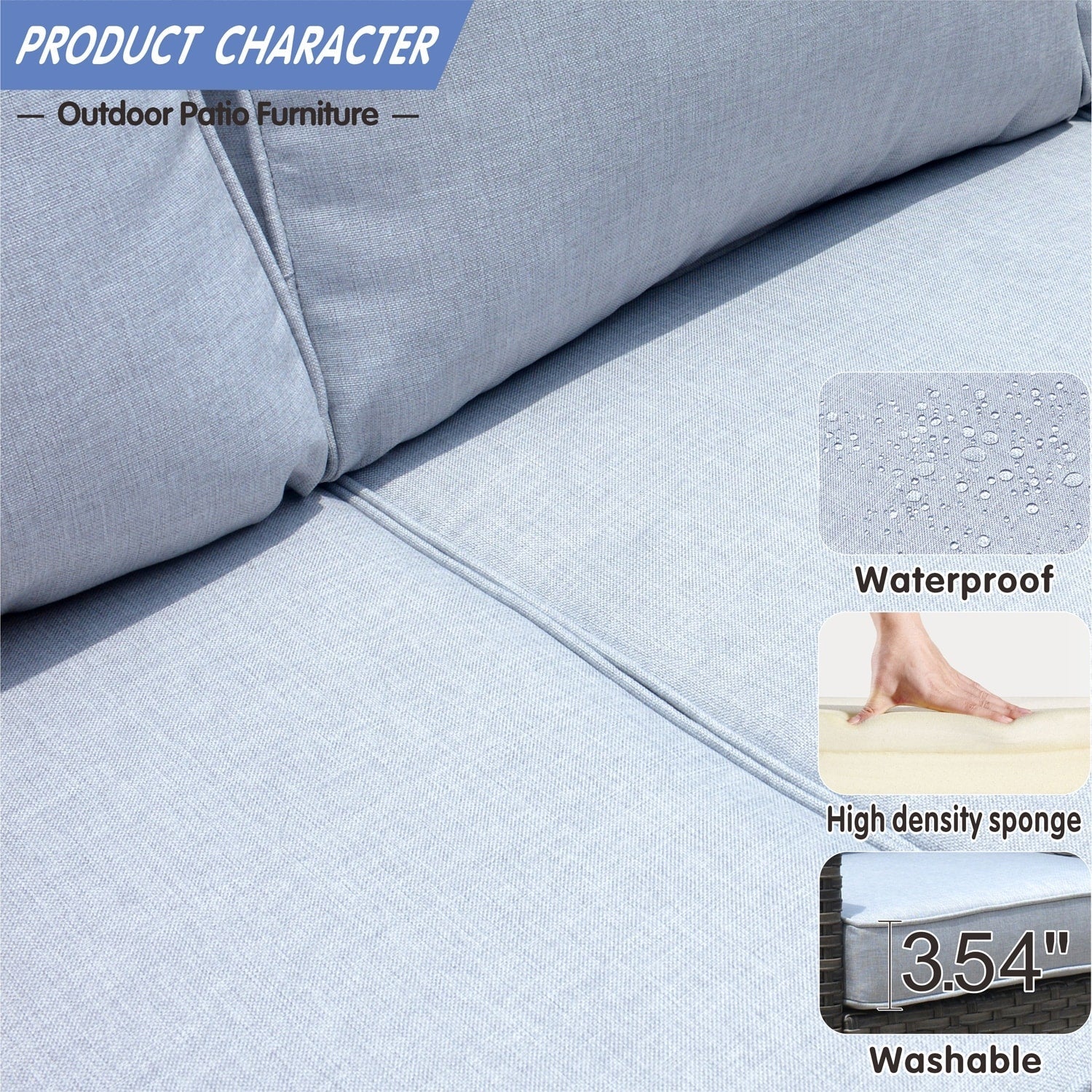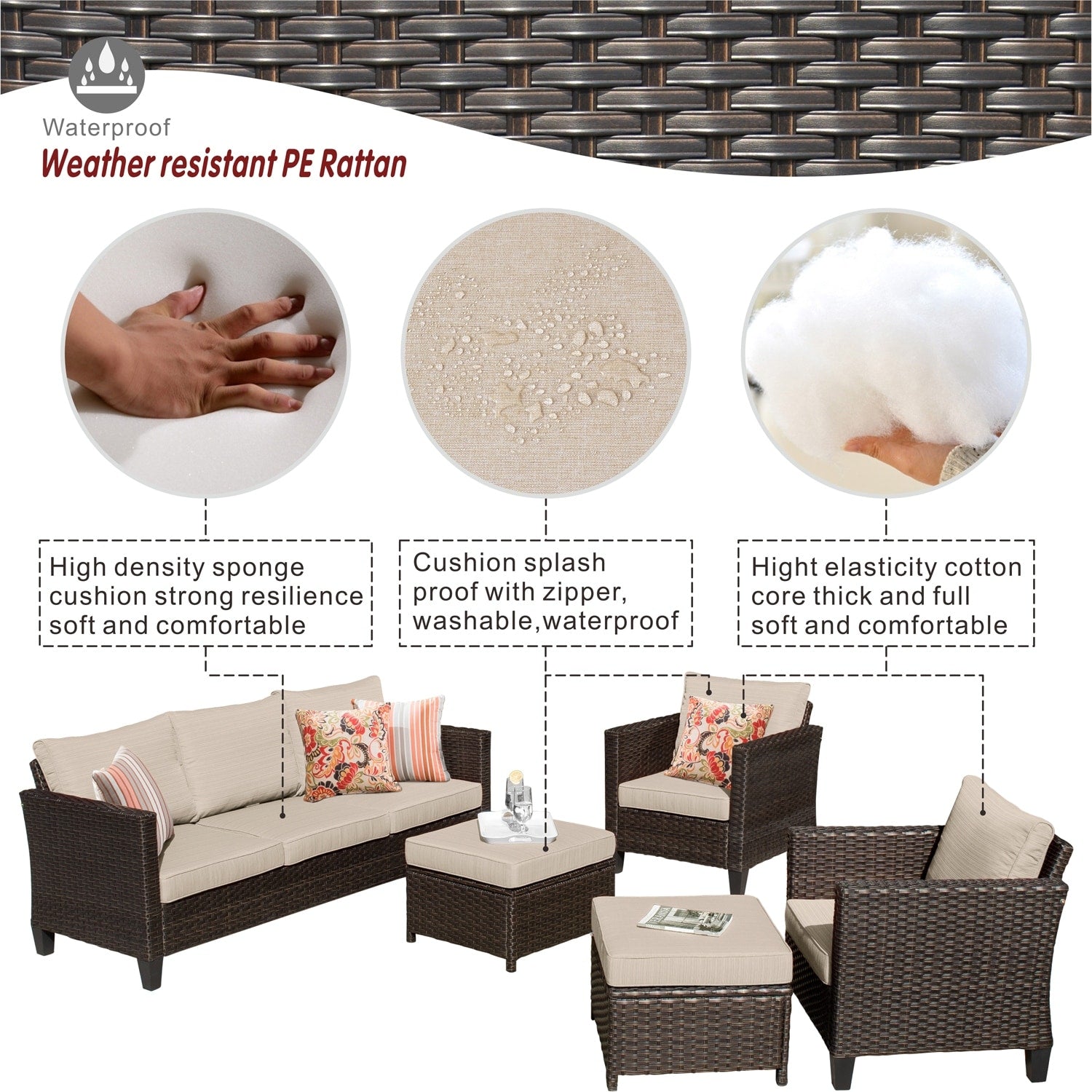 Resistente all'acqua e alle intemperie: i cuscini e gli arredi sono progettati per resistere all'acqua, il che li rende ideali per resistere a pioggia leggera o neve. Sebbene questo set affronti facilmente la maggior parte delle condizioni atmosferiche, è meglio proteggerlo dalle intemperie estreme per una maggiore durata.