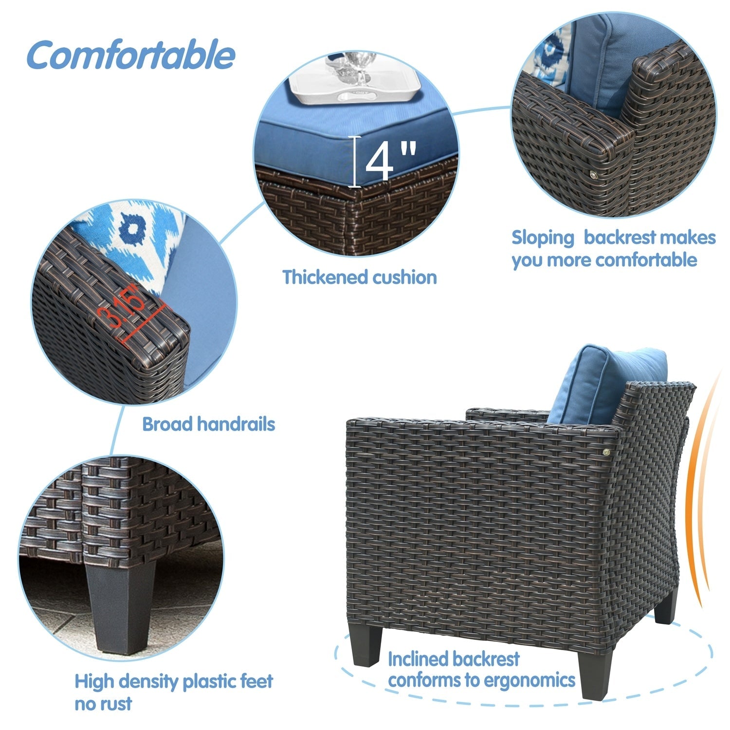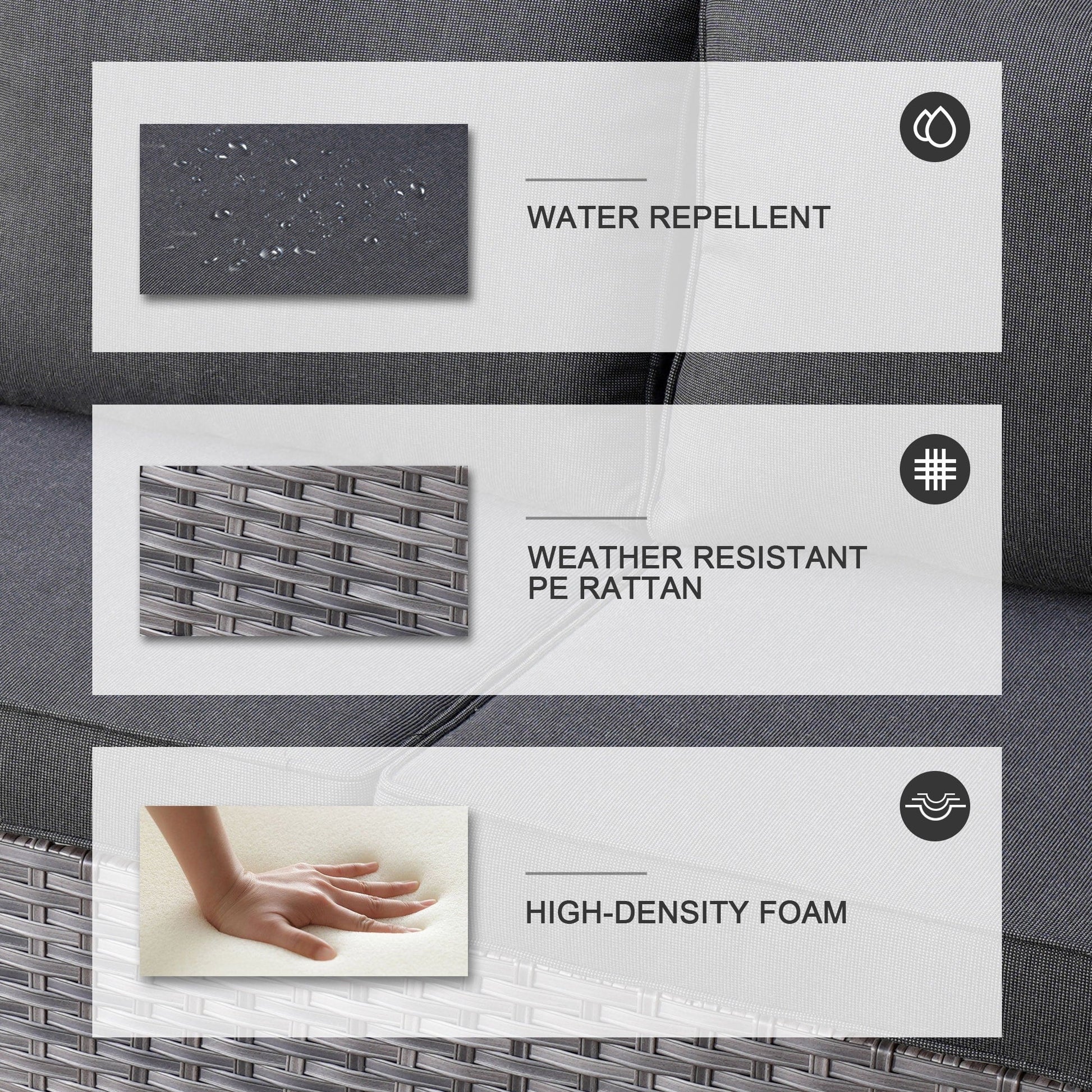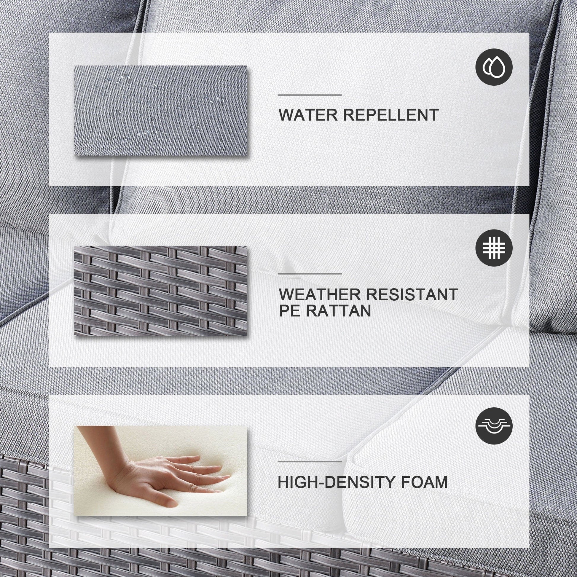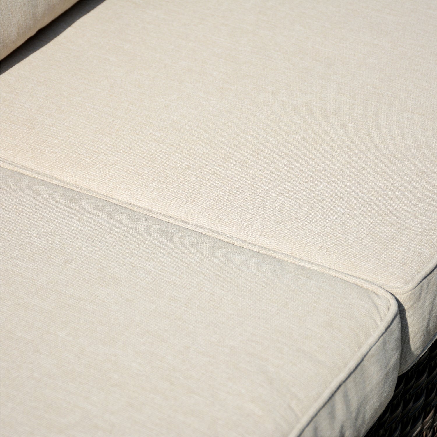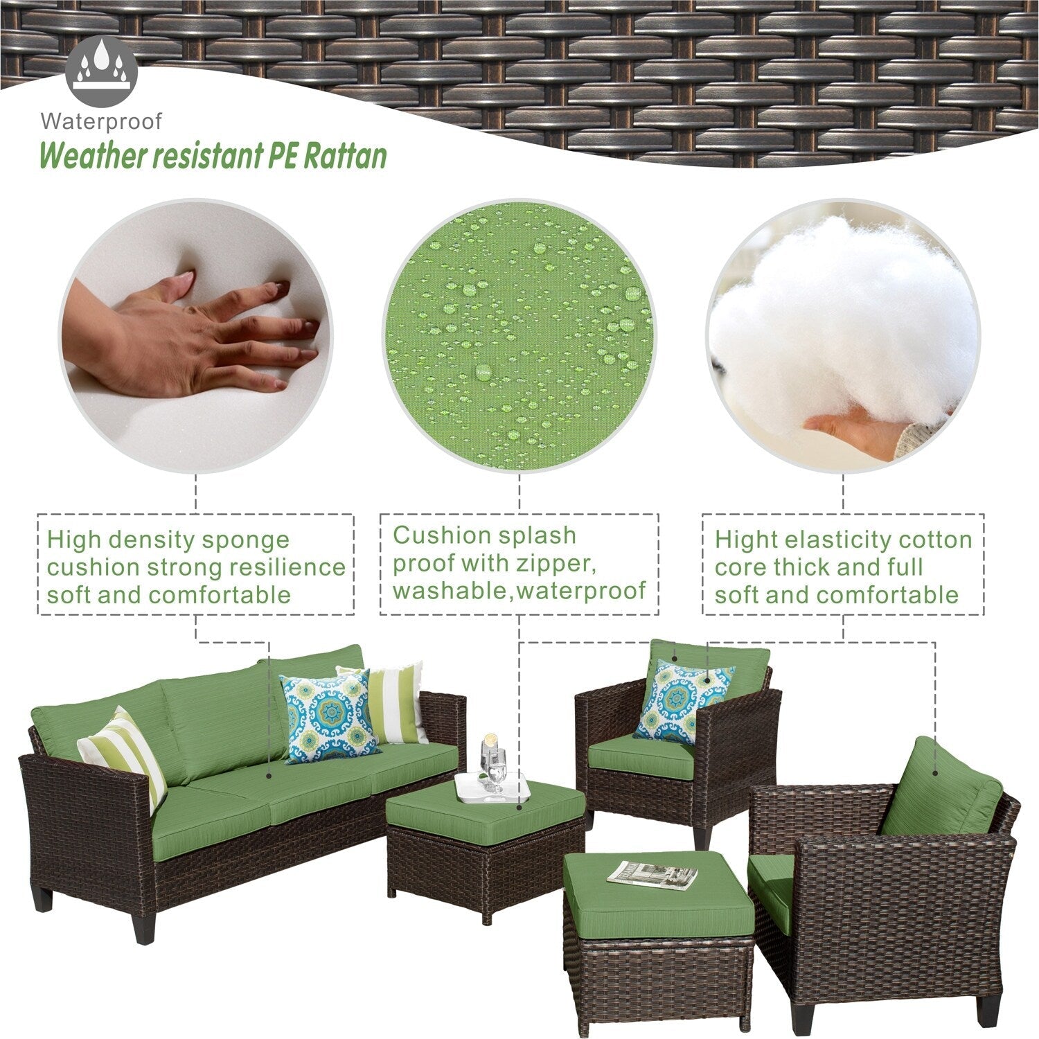 Resistente all'acqua e alle intemperie: i cuscini e gli arredi sono progettati per resistere all'acqua, il che li rende ideali per resistere a pioggia leggera o neve. Sebbene questo set affronti facilmente la maggior parte delle condizioni atmosferiche, è meglio proteggerlo dalle intemperie estreme per una maggiore durata.