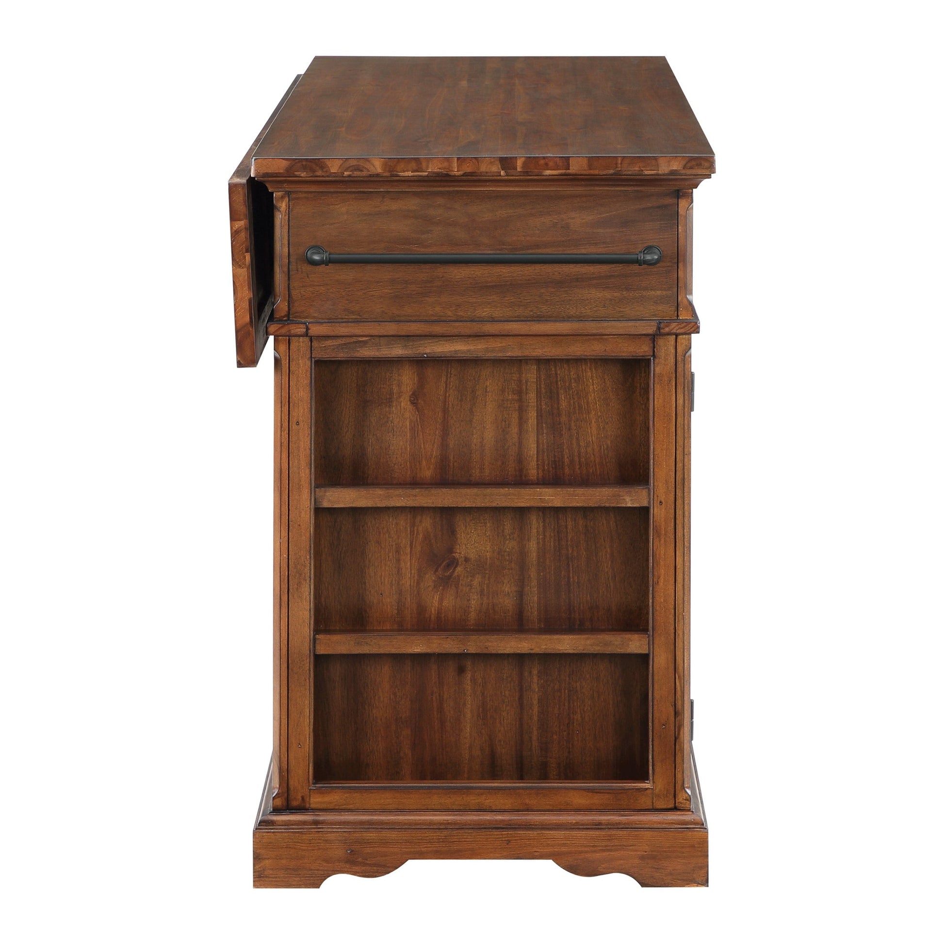 Aggiungi il calore e il fascino dello stile rustico alla tua casa con la nostra isola da cucina. Gli utensili sono a portata di mano grazie al nostro design a 3 cassetti. Tieni in ordine e fuori dalla vista grandi pentole, ciotole o elettrodomestici da banco nel nostro spazioso mobile a tre ante con 2 ripiani regolabili. Tieni teglie e taglieri in ordine e organizzati grazie ai comodi ripiani verticali divisi. Le piccole spezie possono essere esposte e tenute a portata di mano grazie ai portaspezie esterni laterali, situati appena sotto un portasciugamani ben posizionato. Realizzato in legno massello e impiallacciato e rifinito con una verniciatura a 8 passaggi per una lunga durata. Spedito in tre scatole ed è necessario il montaggio.