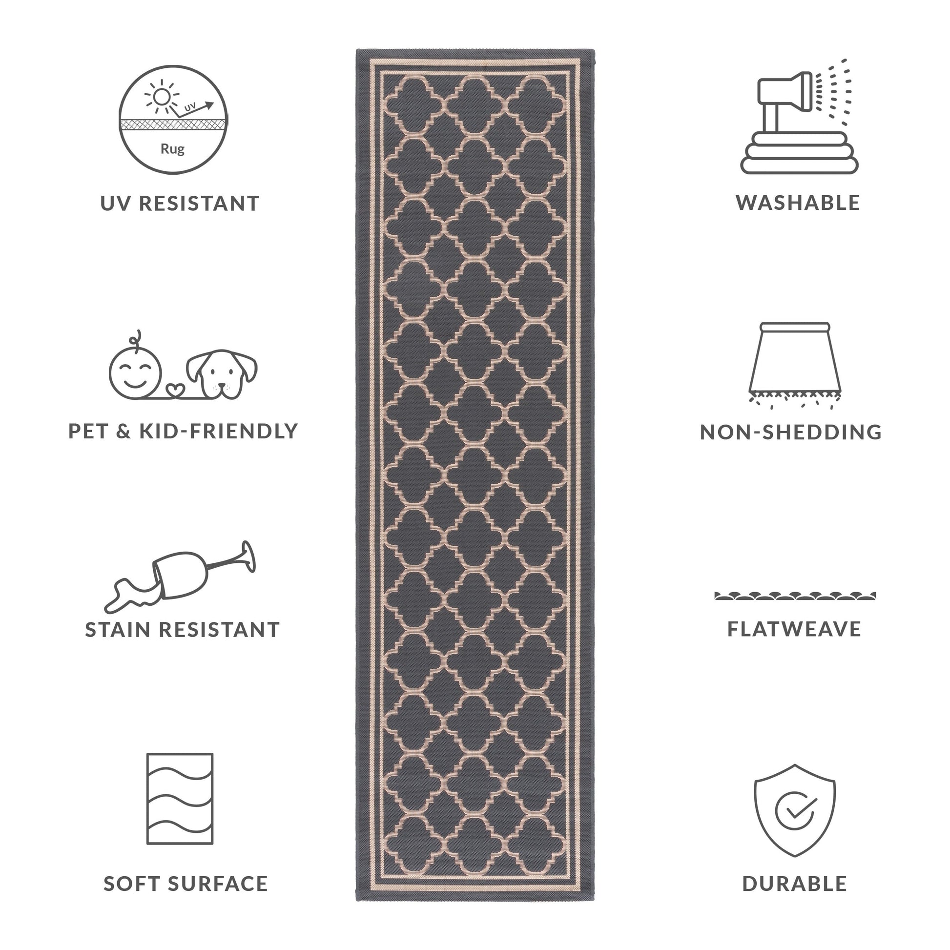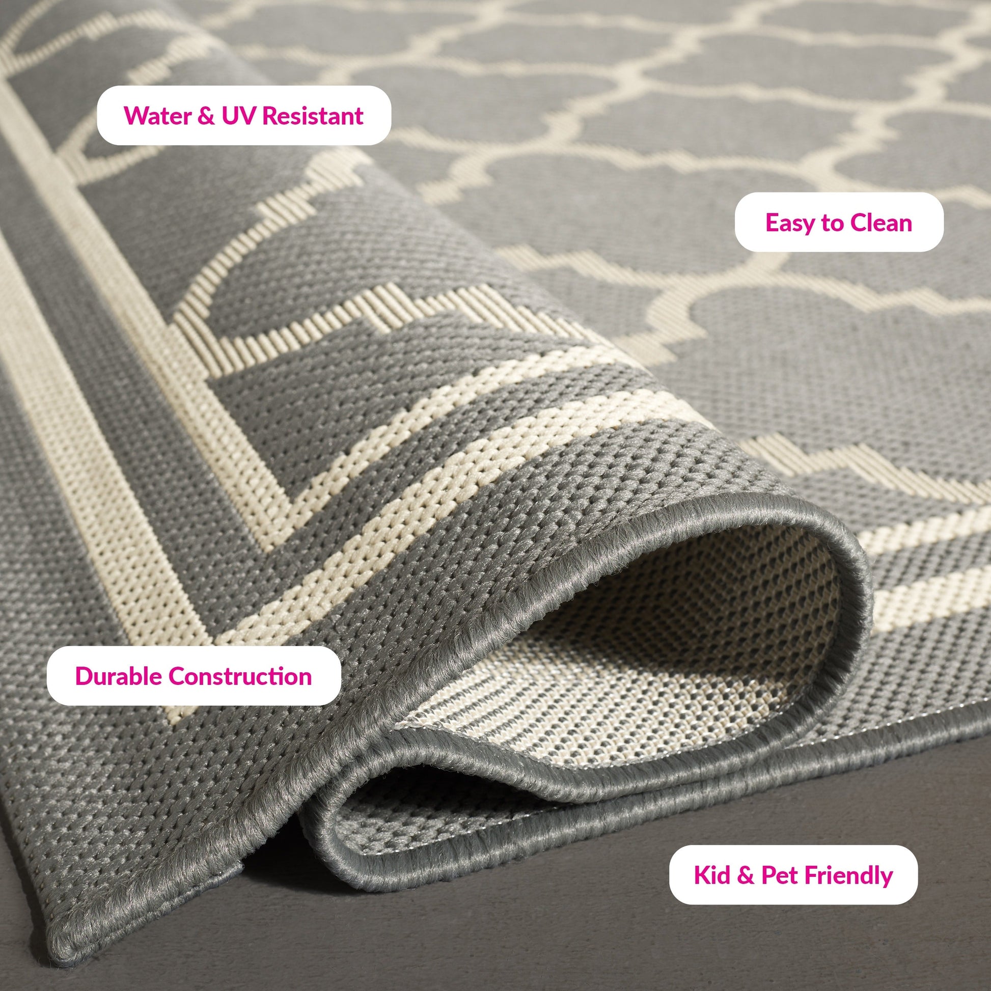 Ideale per una vasta gamma di ambienti esterni e interni, come giardini, patii, terrazze, verande o aree piscina, questo elegante tappeto della Courtyard Collection è un elemento funzionale che valorizza qualsiasi spazio abitativo. Progettato per resistere alle esigenze di animali domestici e bambini, questo tappeto di facile manutenzione è adatto anche ad aree frequentate come anticamere o cucine. Esaltando l'arredamento da esterno con design freschi in tonalità e motivi di tendenza che spaziano dal classico al moderno, questa raffinata collezione di tappeti stabilisce un nuovo standard per lo stile outdoor. Le dimensioni dei tappeti possono variare leggermente.