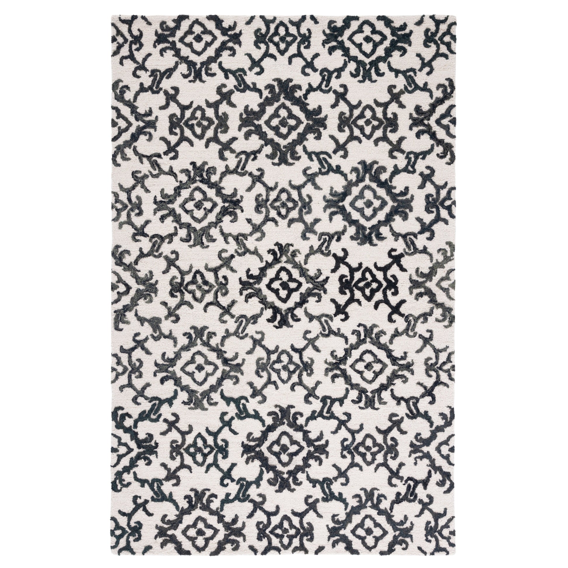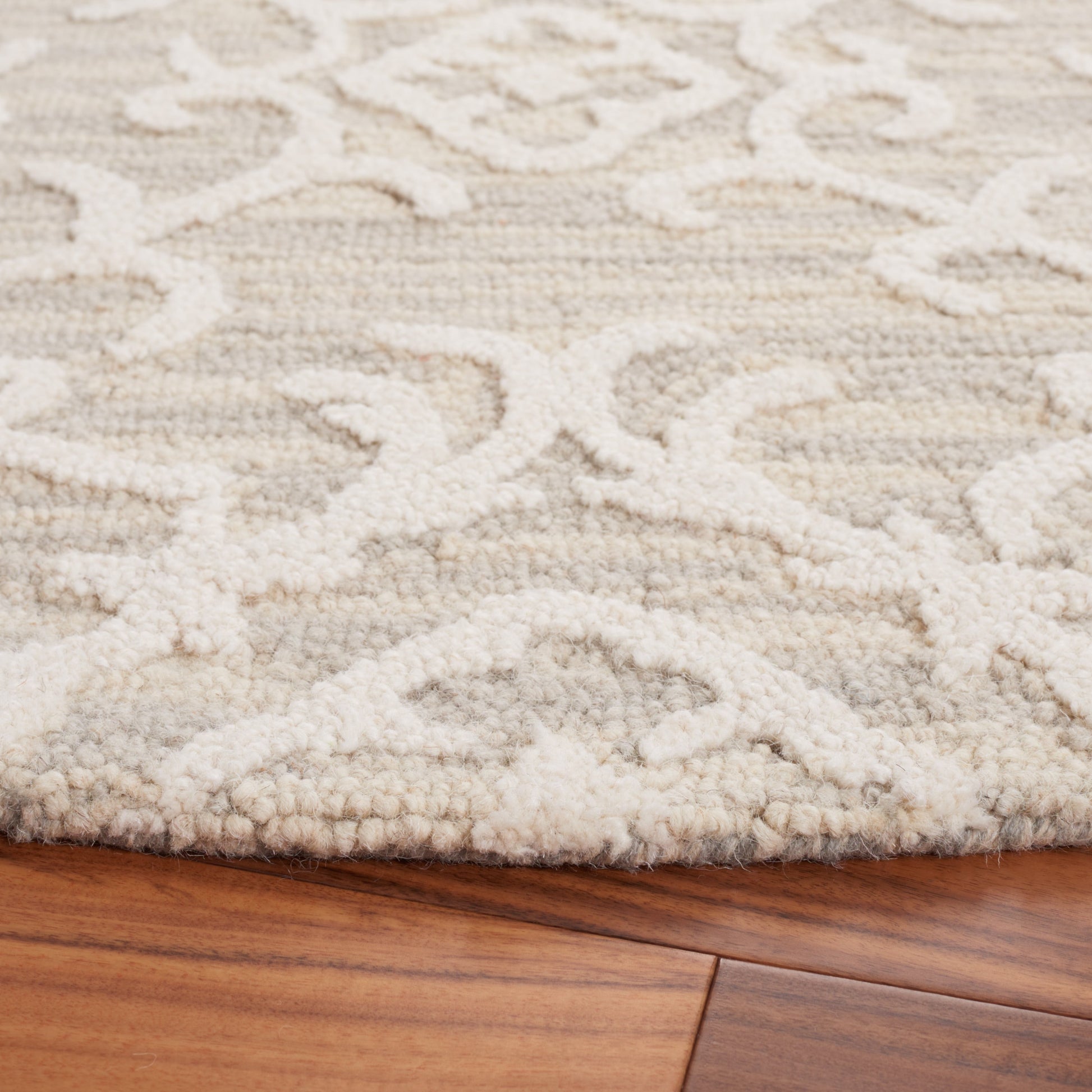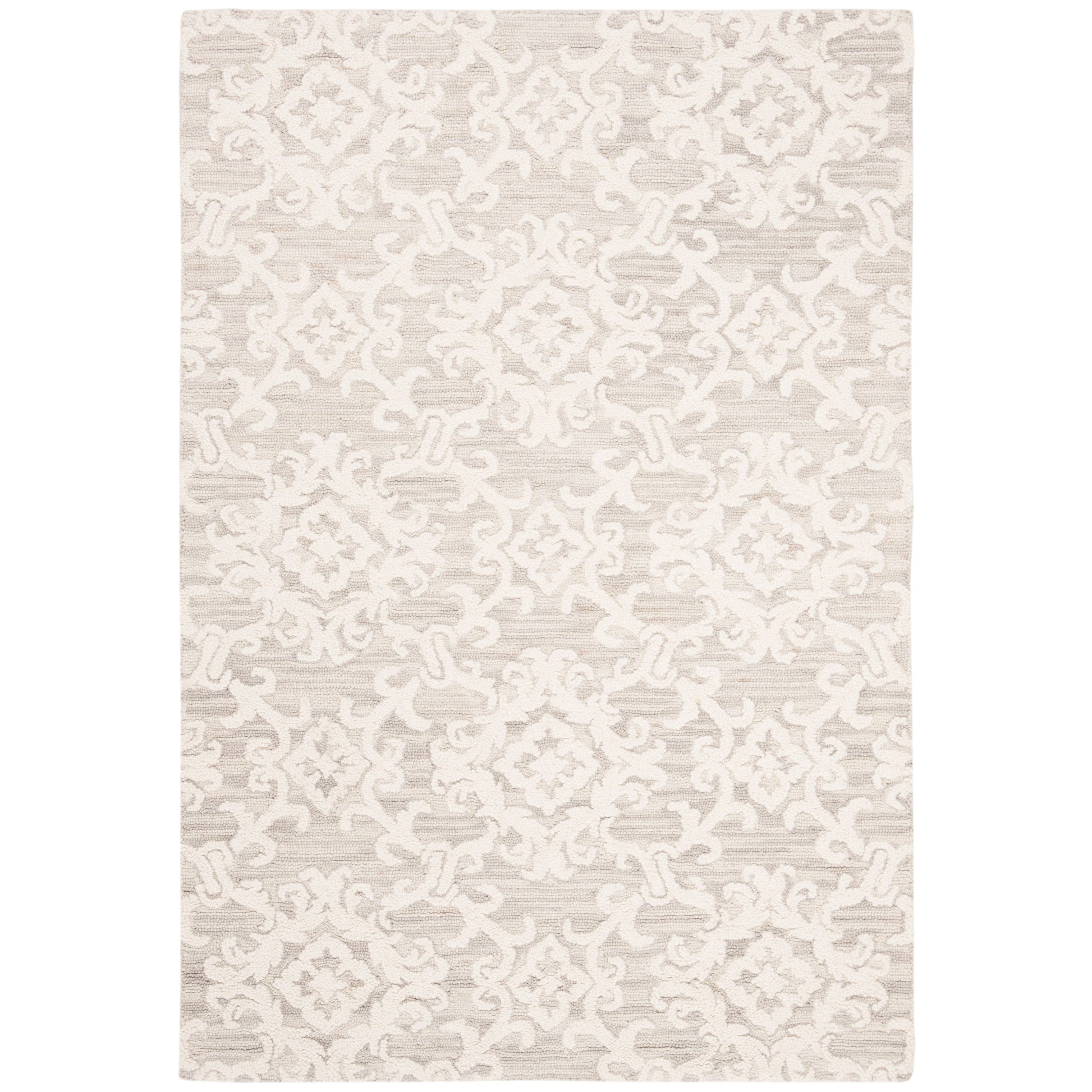 Esalta il tuo spazio abitativo con il fascino squisito del nostro tappeto in lana tuftato a mano, ora disponibile nell'imponente formato 3 x 4 metri, perfetto per valorizzare ampi soggiorni, sale da pranzo o suite padronali. Realizzato con cura in India, questo tappeto vanta un'altezza di 6 cm, ideale per creare un'atmosfera invitante ma elegante. Impeccabilmente progettato con una raffinata palette di colori grigio e avorio, questo grande tappeto rettangolare presenta un sofisticato gioco di motivi tradizionali. I suoi eleganti motivi damascati, definiti da delicati vortici ed elementi floreali, creano un'atmosfera serena e senza tempo che si adatta senza sforzo a una varietà di stili d'arredo. La lavorazione tuftata a mano garantisce l'unicità di ogni pezzo, dimostrando il tocco dell'artigiano in ogni fibra. La composizione in lana al 100% del tappeto non solo gli conferisce una morbidezza ineguagliabile al tatto, ma contribuisce anche alla sua durevolezza, rendendolo un'aggiunta affidabile alla tua casa per gli anni a venire. Lascia che il tuo pavimento diventi un'affermazione di lusso ed eleganza con questo magnifico tappeto; una testimonianza di bellezza classica e maestria artigianale.